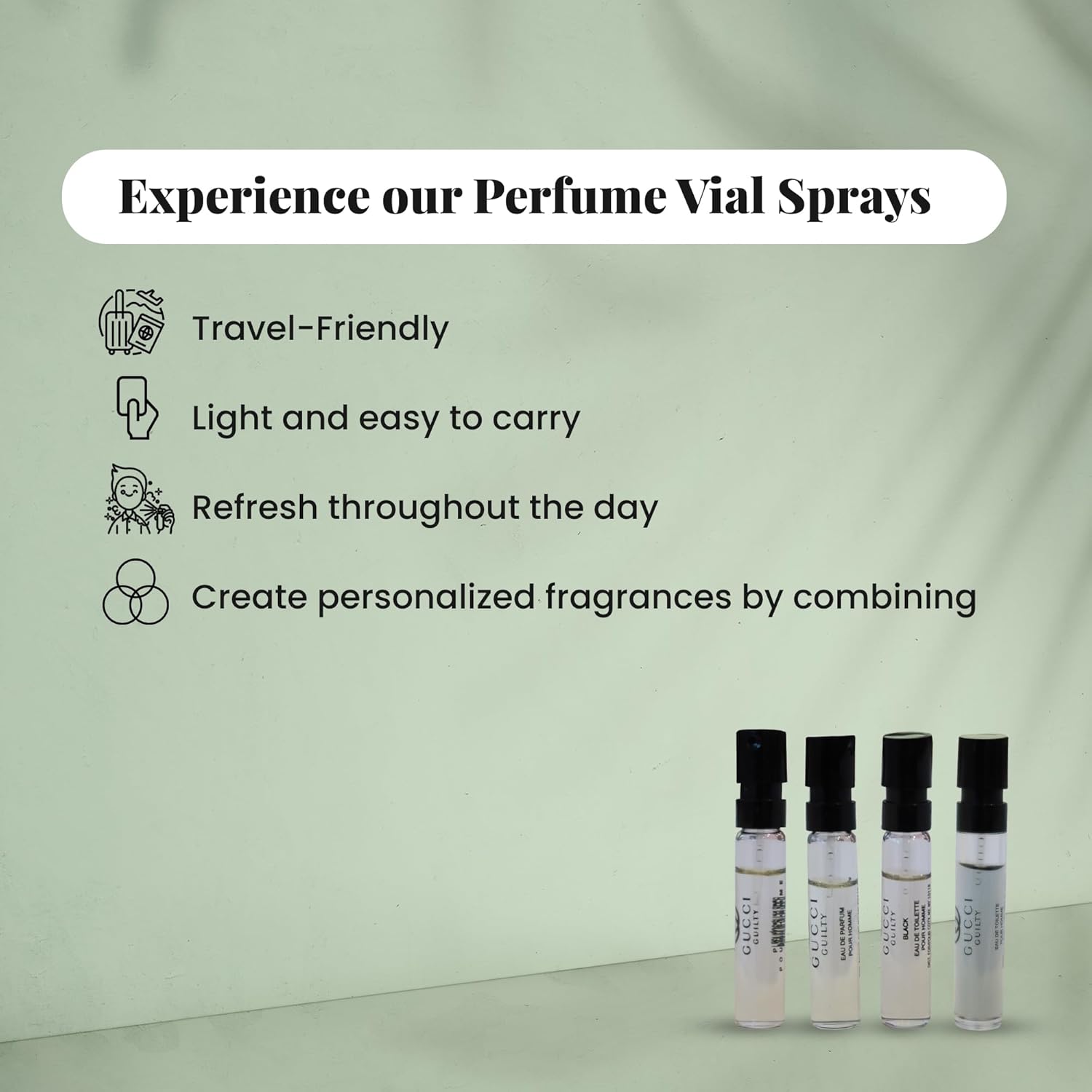 Experience the timeless sophistication of Gucci with the Gucci Guilty Perfume for Men Variety Mini Vial Spray Gift Set, featuring four iconic fragrances in 0.05-ounce mini vial sprays: Guilty EDT, Guilty EDP, Guilty Black, and Guilty Parfum. This luxurious set is perfect for travel, sampling, or gifting, offering a curated selection of captivating scents that embody confidence, elegance, and bold style. Whether exploring new fragrances or gifting a loved one, this versatile set showcases the essence of Gucci’s signature perfumes, crafted for the modern man who appreciates luxury and variety.
