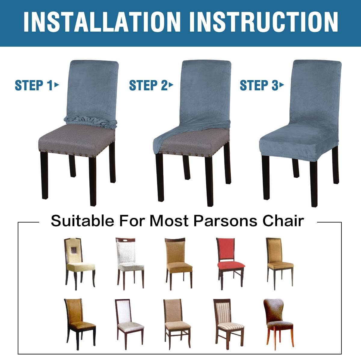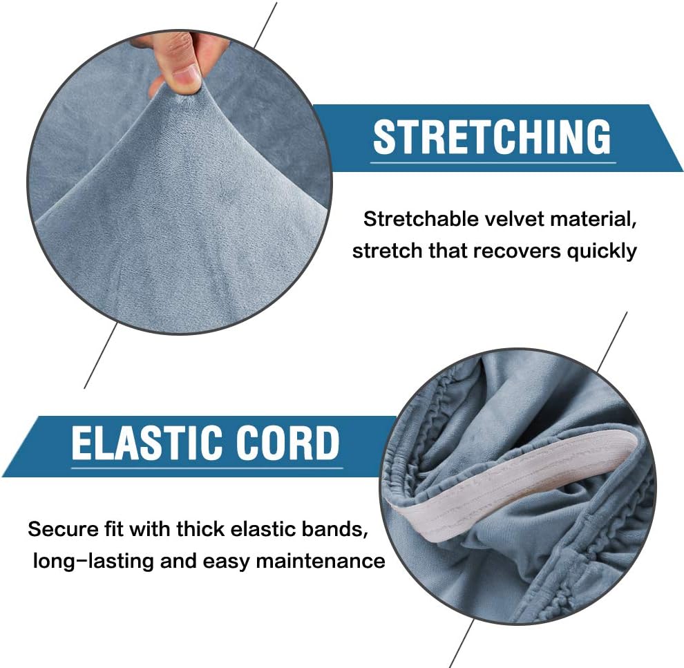 REAL VELVET: Velvet! Velvet! Velvet! These premium form-fitting dining chair covers are crafted from super rich velvet fabric, feature two-way high stretchy and luxurious, feel smooth, durable, make your room more tidy and beautiful, gives your old, damaged chairs a brand new look. Recommended for dining room, home, hotel, wedding banquet, dinner, meeting, celebration, ceremony