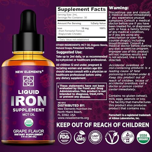 Specification: Iron Supplement for Women & Men Free Blood Builder, Iron Vitamin for Anemia USDA Organic Liquid Iron Drops for Adults with MCT Oil, Natural Grape Flavor, Faster Absorption & Immune Support, 2 Fl Oz