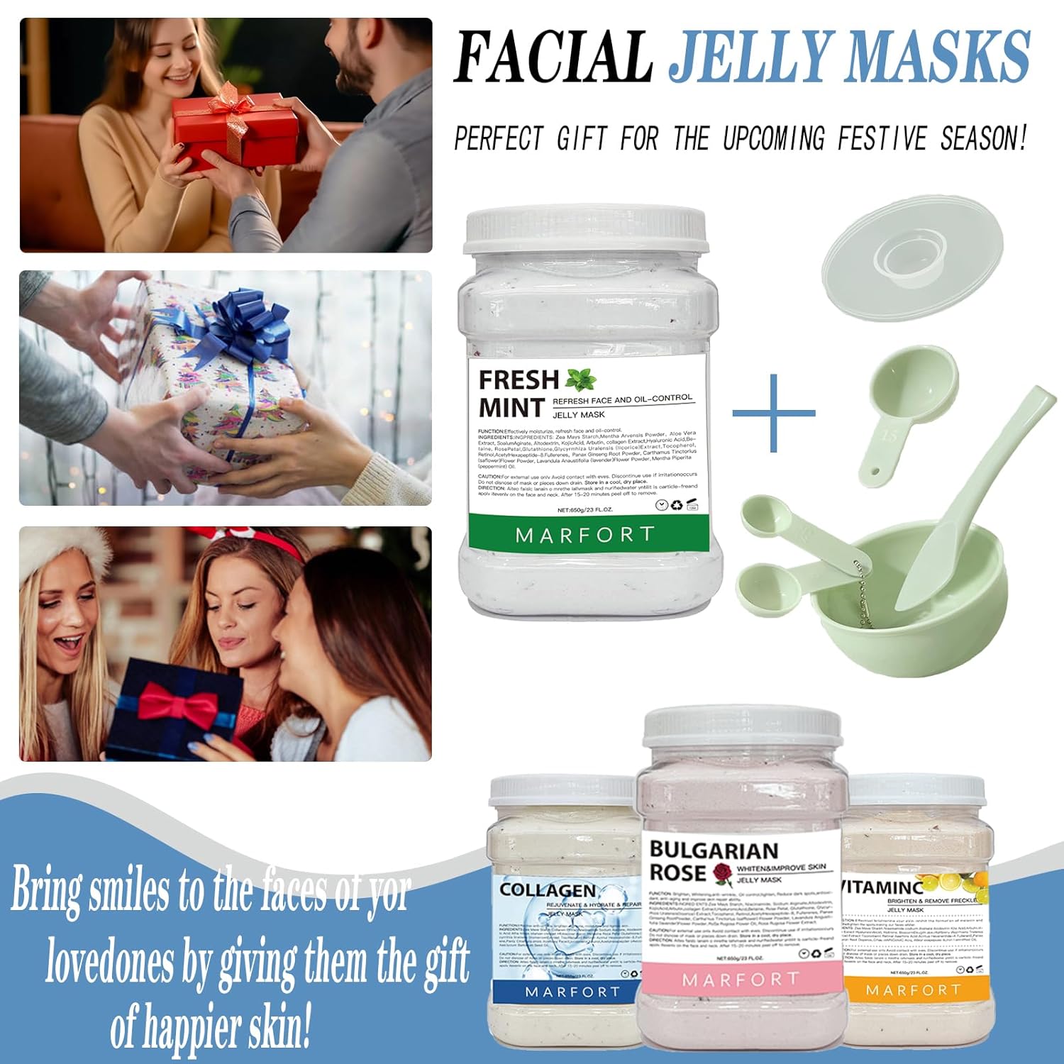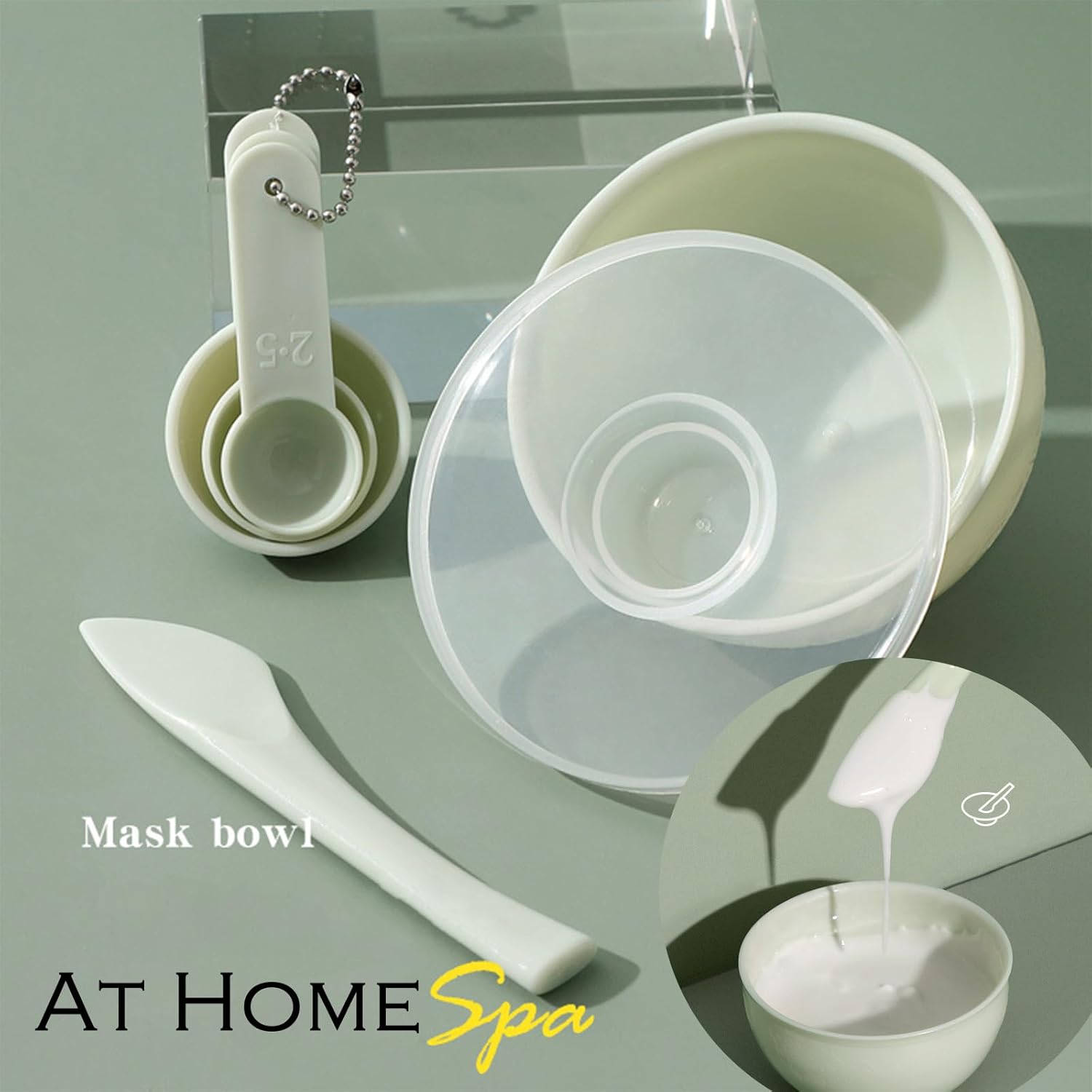 Package Includes – 1 jar of jelly mask, 1 mixing bowl, 1 measuring cups, 1 spatula for application