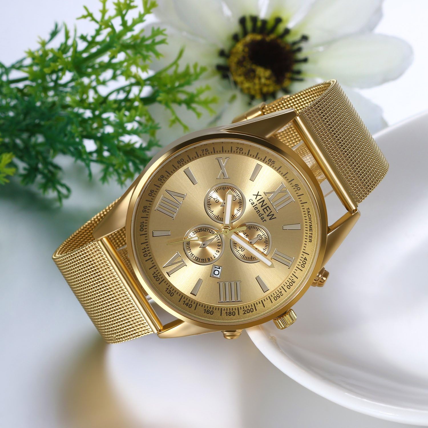 The luxury gold watch is suitable for men and boys as the band is adjustable.