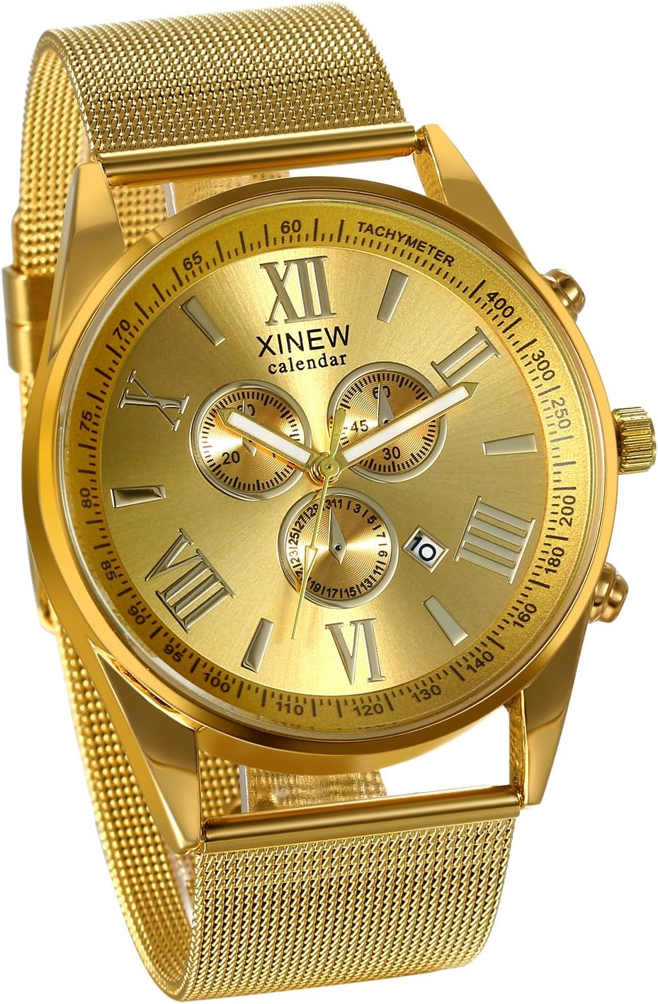 Every watch comes with an elegant blue gift box.The trendy gold watch is a great gift choice for your father, husband, boyfriend, or just males friends to show your love.