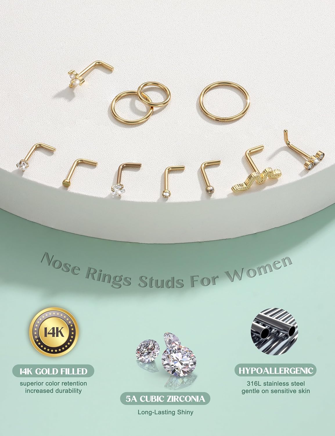 Be the first to review “Jstyle 14K Gold Filled Nose Rings for Women 18G 20G Nose Rings Studs Hypoallergenic 316L Stainless Steel Round CZ Heart Snake Nostril Piercing Jewelry 6/8/10MM Hoop”