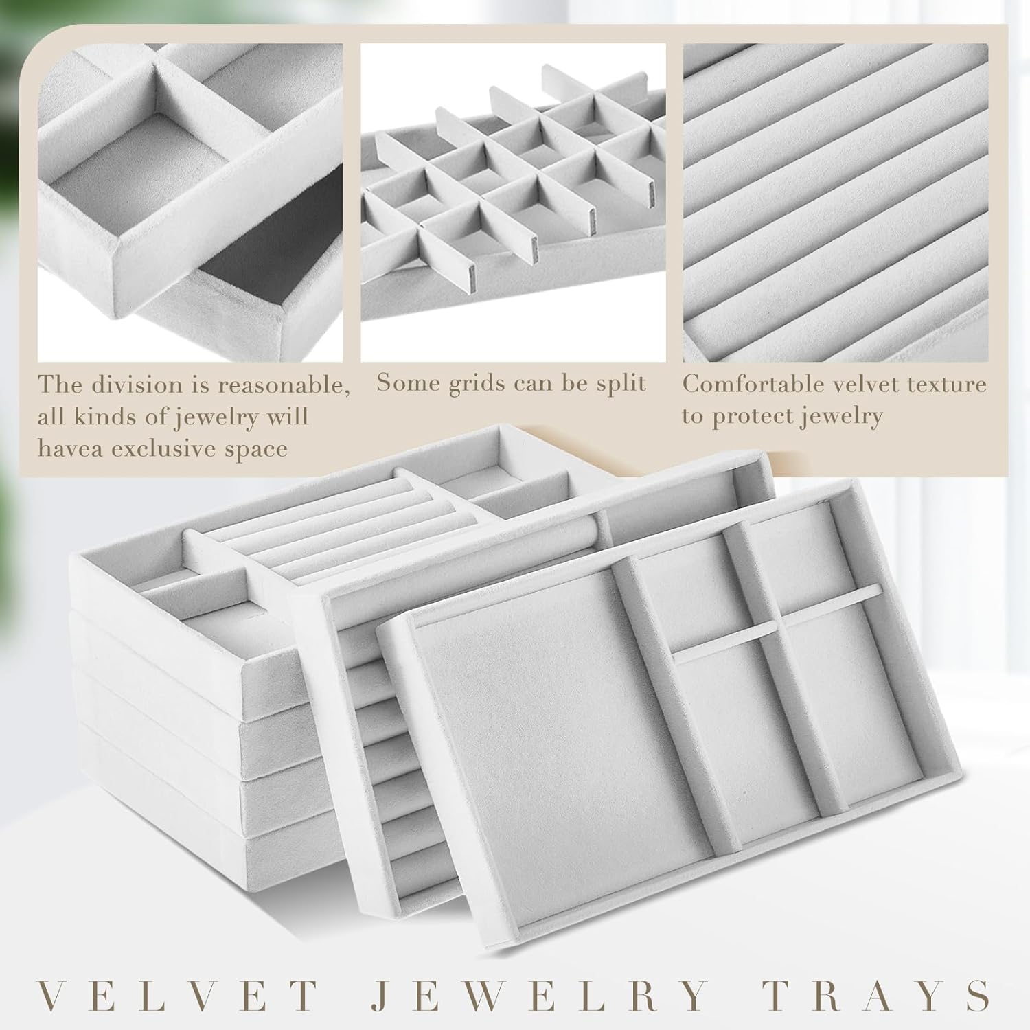 Convenient to Use: the 6 different styles of jewelry trays is stackable, suitable for bracelets, earrings, rings, necklaces, watches, bracelets, brooches, hair accessories and so on, can match well with the decoration style of shops and rooms