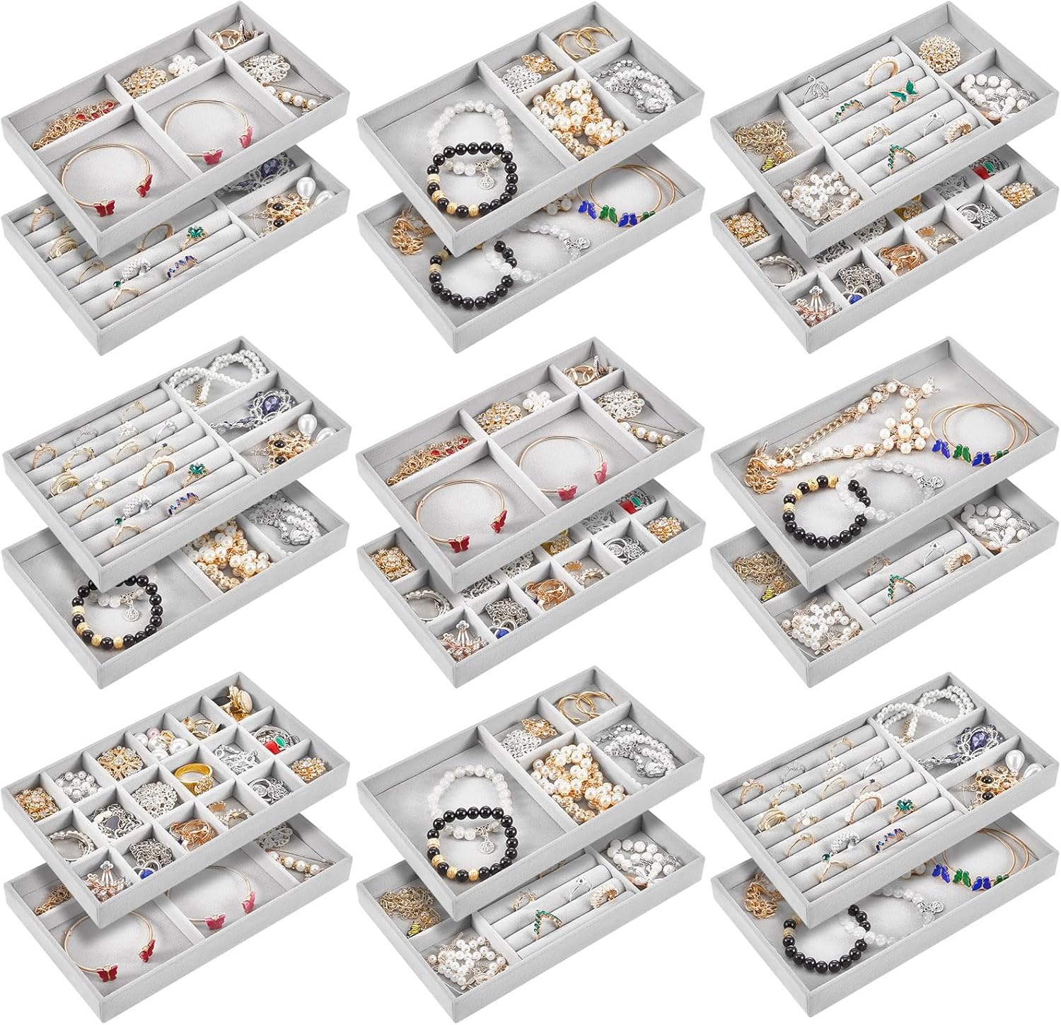 Be the first to review “Junkin 18 Pcs Velvet Jewelry Tray Stackable Jewelry Drawer Organizer Jewellery Box Divided Display Tray for Earring Bangle(Gray)”