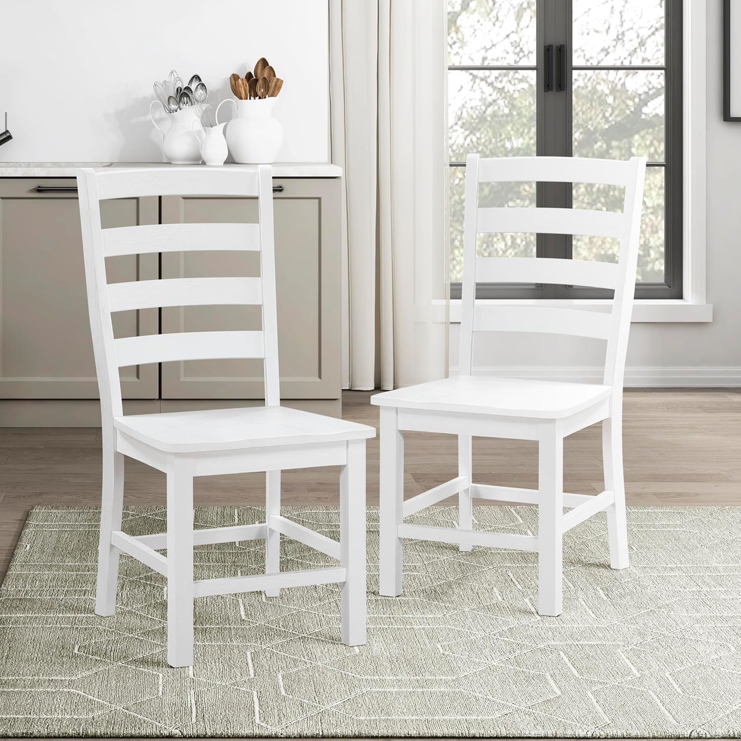 Lexicon Farmhouse Dining Chairs Set of 2, Kitchen Dining Chairs with Sturdy Solid Wood Frame, Legs, Footrest, High Ladder Back, Comfortable Classic Wooden Armless Side Seat, Easy Assembly, White