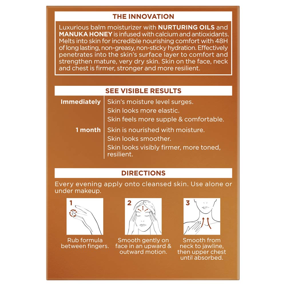 L’Oreal Paris Skincare Age Perfect Hydra Nutrition Ultra Nourishing Honey Night Balm, Face Moisturizer to Comfort, Improve Resilience on Dry Skin, Manuka Honey and Nurturing Oils, 1.7 oz.