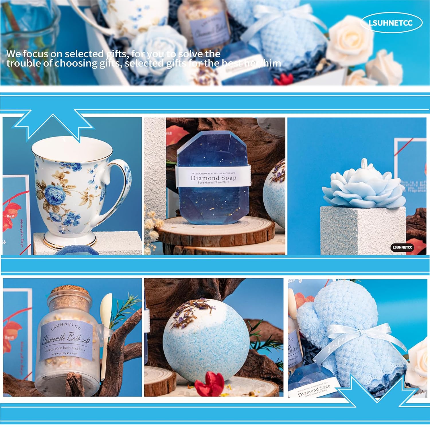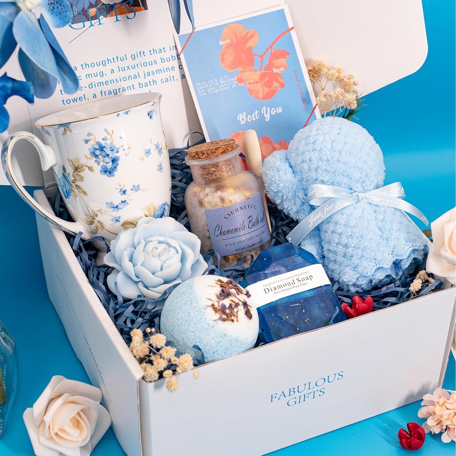 Be the first to review “Lsuhnetcc Gift Sets for Women Luxury Unique Relaxing Spa Gift Baskets Self Care Gift Box, Birthday Gift for Her Mom Sister Wife Best Friend, Mug Teddy Bear Towel 3D Jasmine Scented Candle Rose Bath Salt, Valentine’s Mother’s Day Blue”