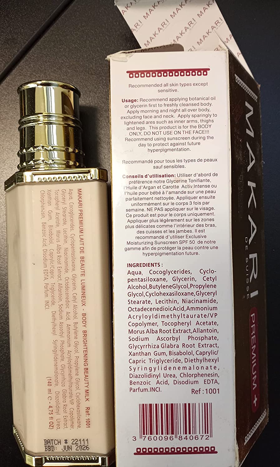 BRIGHTENS YOUR SKIN: Makari Premium+ Body Brightening Beauty Milk is a nourishing anti-aging lotion. It rejuvenates your skin’s texture and tone for a more youthful appearance.