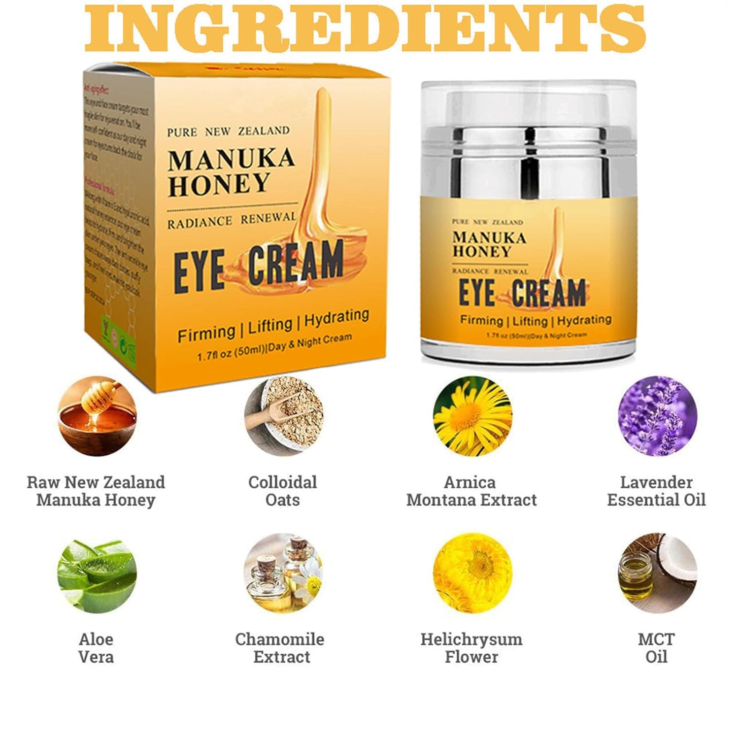 【Lasting results】Our Honey Eye Cream gives eyes complete anti-aging moisturizing protection all day and night. Addresses the most common frustrations associated with aging skin around the eyes (dark circles, puffiness, loss of firmness, sagging skin, wrinkles, crow’s feet, and dryness).