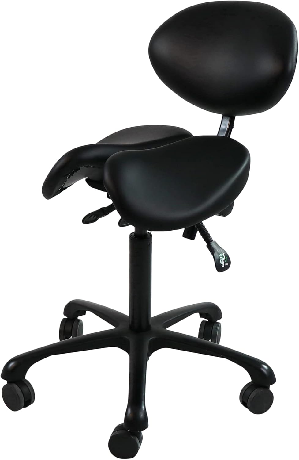 Master Massage Berkeley Backrest Saddle Stool with Black Aluminum Base