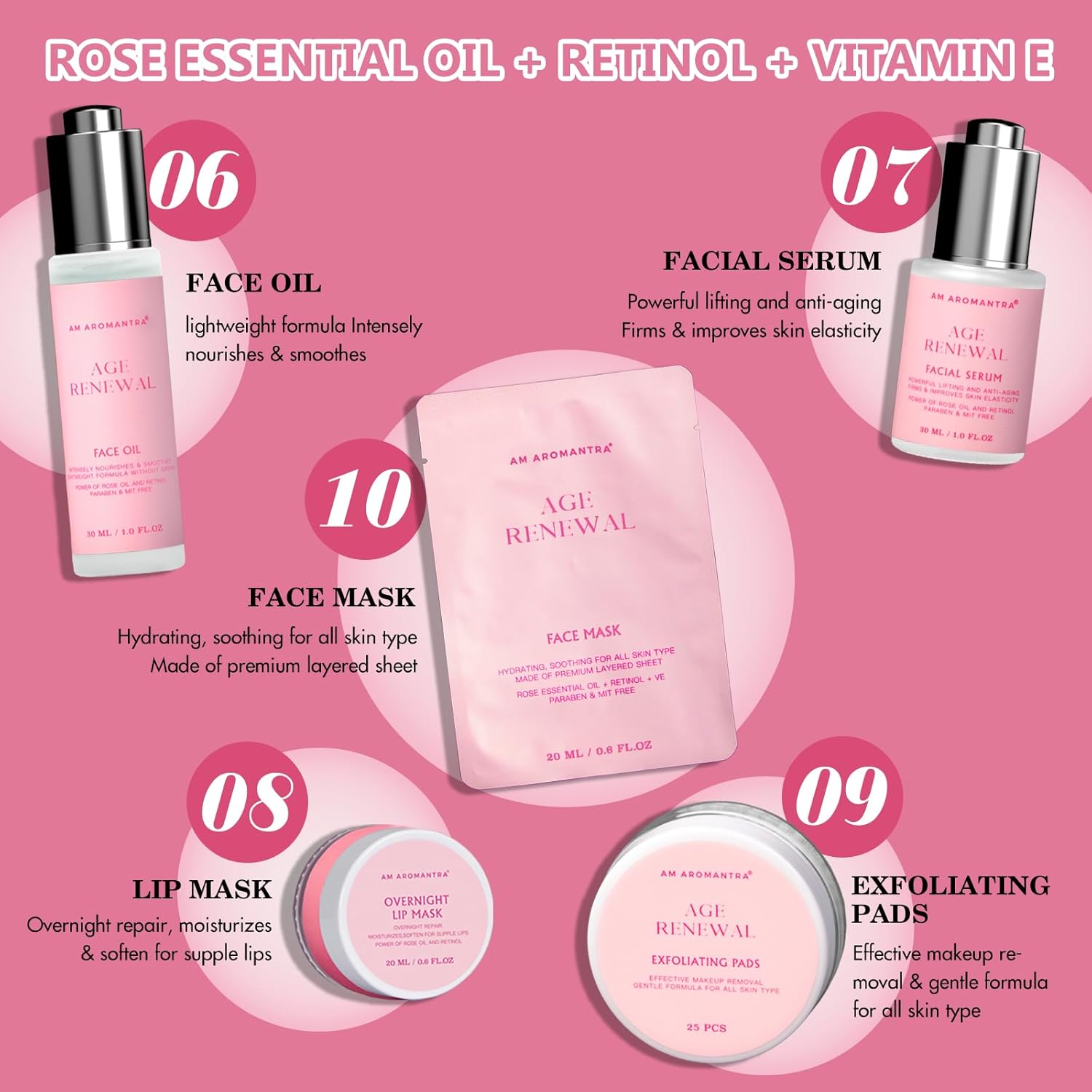 【Comprehensive Skin Rejuvenation】 By incorporating these three powerhouse ingredients, this set offers a complete skincare solution. Retinol works overnight to renew the skin, Vitamin E ensures lasting hydration throughout the day, and Rose Flower Oil calms and nourishes, leaving your skin feeling balanced and rejuvenated