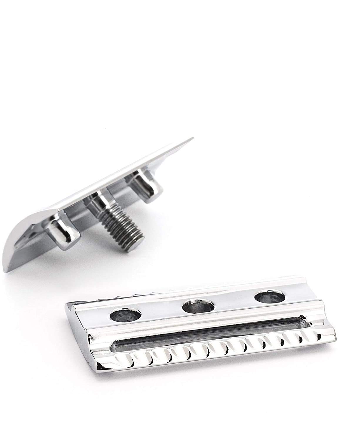 CLOSED COMB RAZOR: Grooming has never felt more nostalgic. This classic safety razor head has a closed tooth comb design that, paired with a gap behind the foam edge, prevents build-up. The blade angle is a special design for the closest shave.
