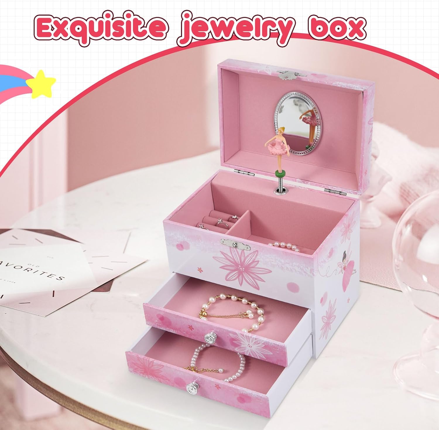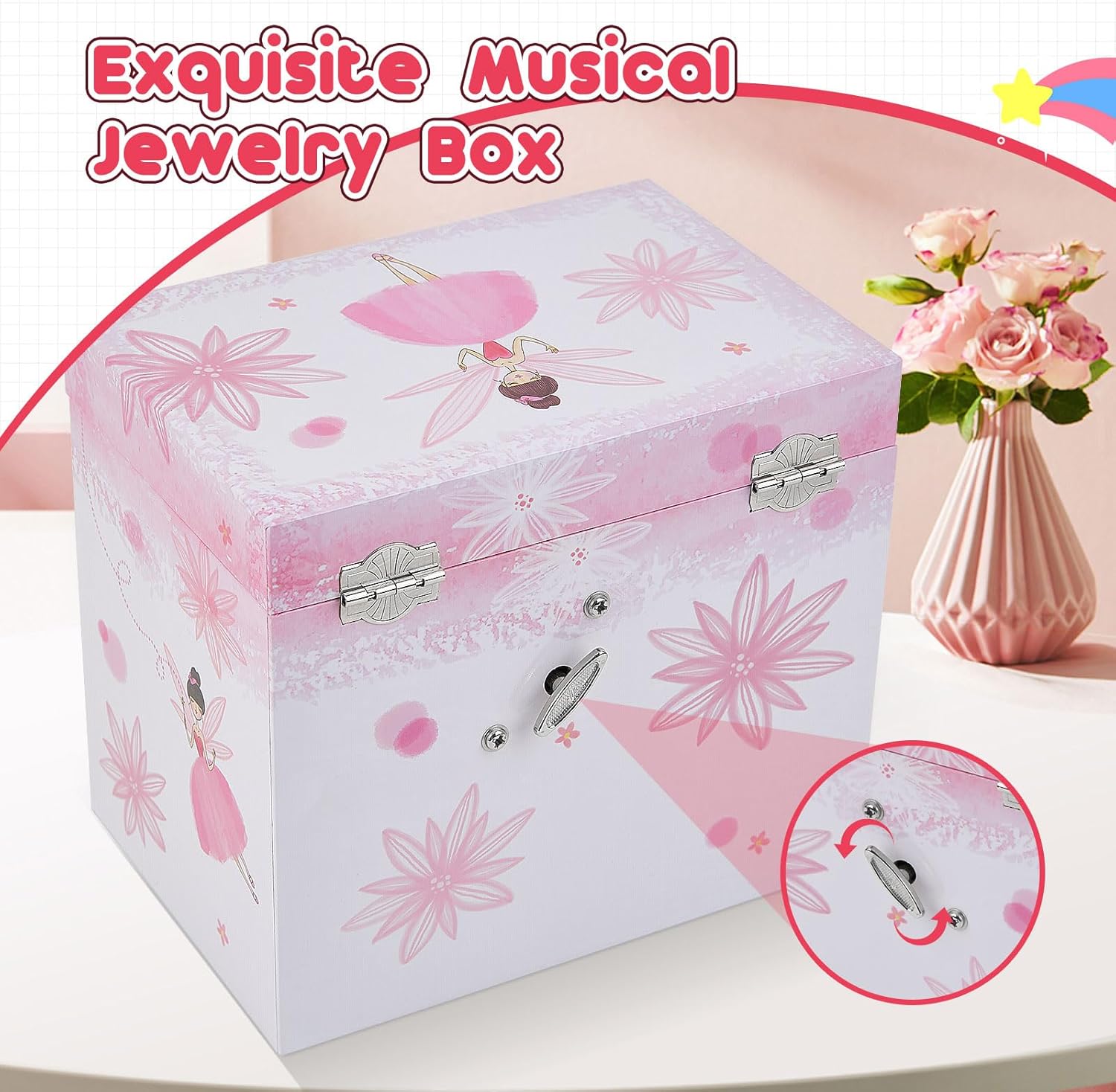 【Birthday Gift】: This musical jewelry box is a perfect birthday gift for girls. It is not only a beautiful decoration, but also a practical jewelry storage box. The jewelry box can be used for many years, and it is also a great gift for friends and family.