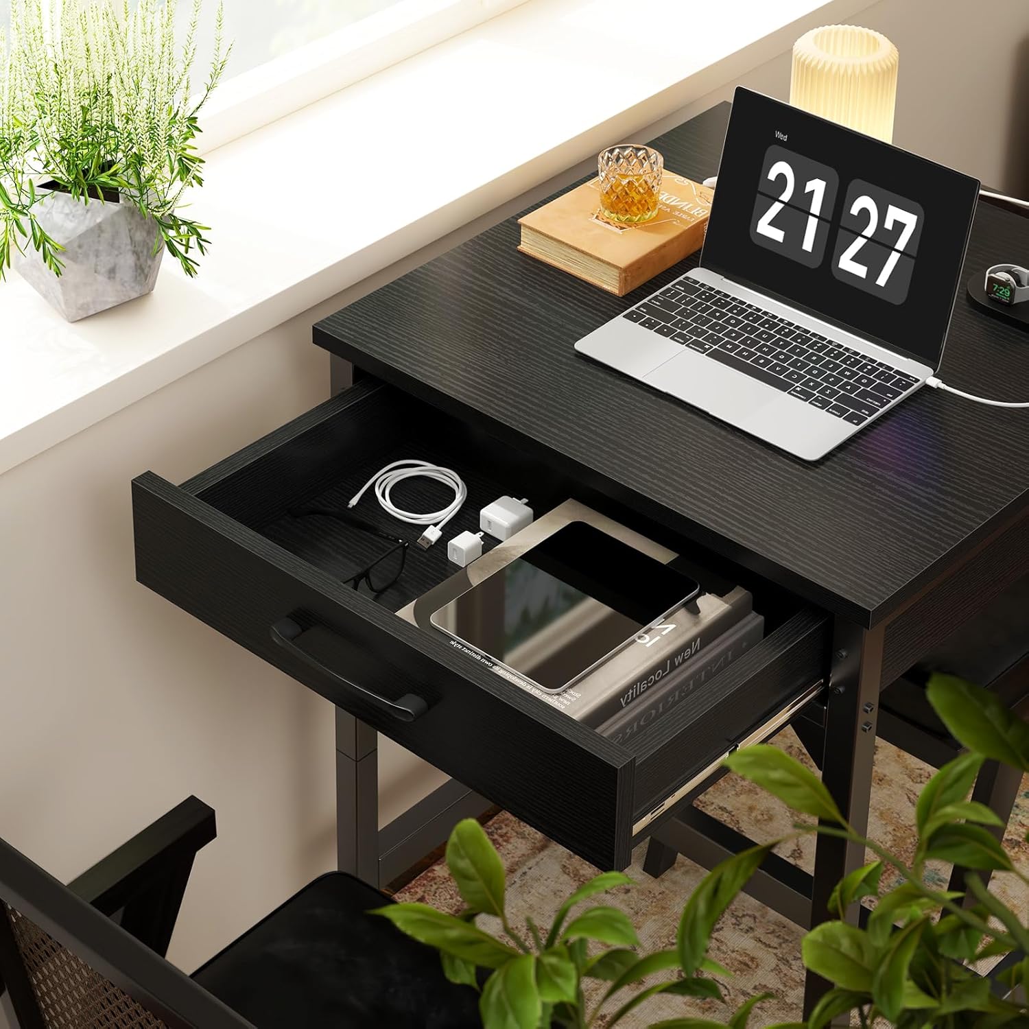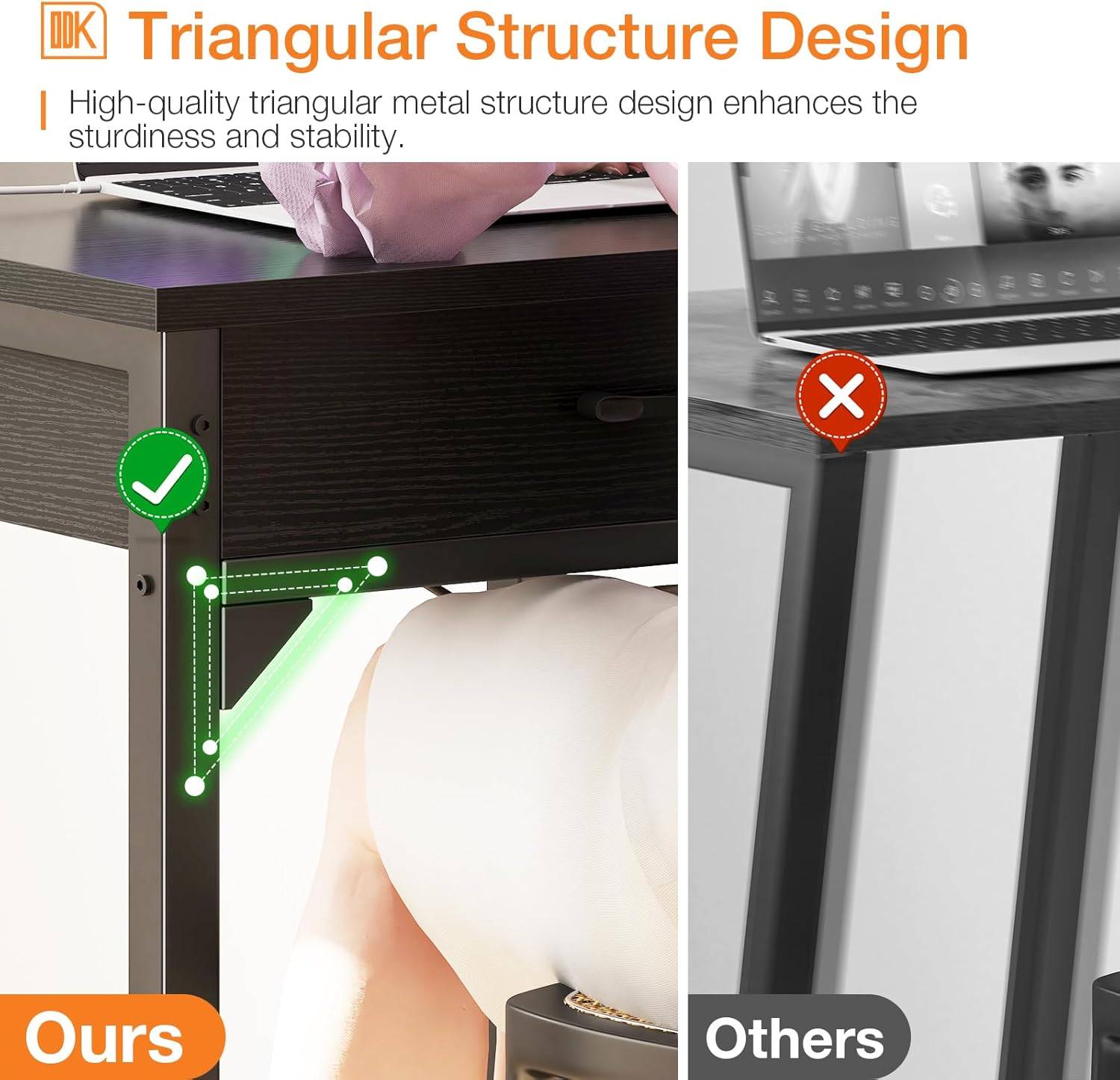 【High-quality & Sturdy Frame】Constructed with a premium metal frame, the table is reinforced with crossbars for added strength and durability. Four adjustable foot pads ensure stability on both even and uneven surfaces, while the recommended weight capacity of 220 lbs guarantees reliability for daily use.