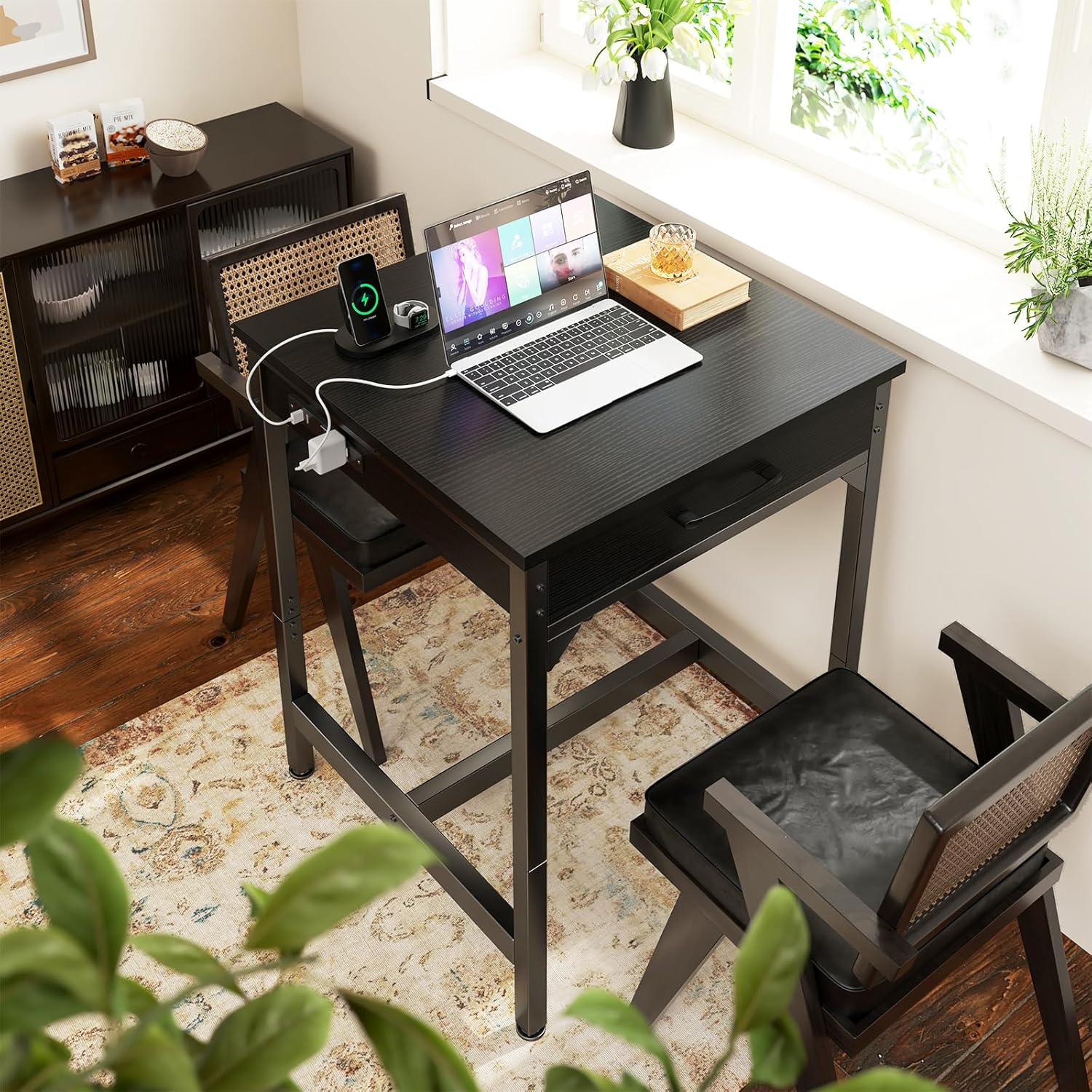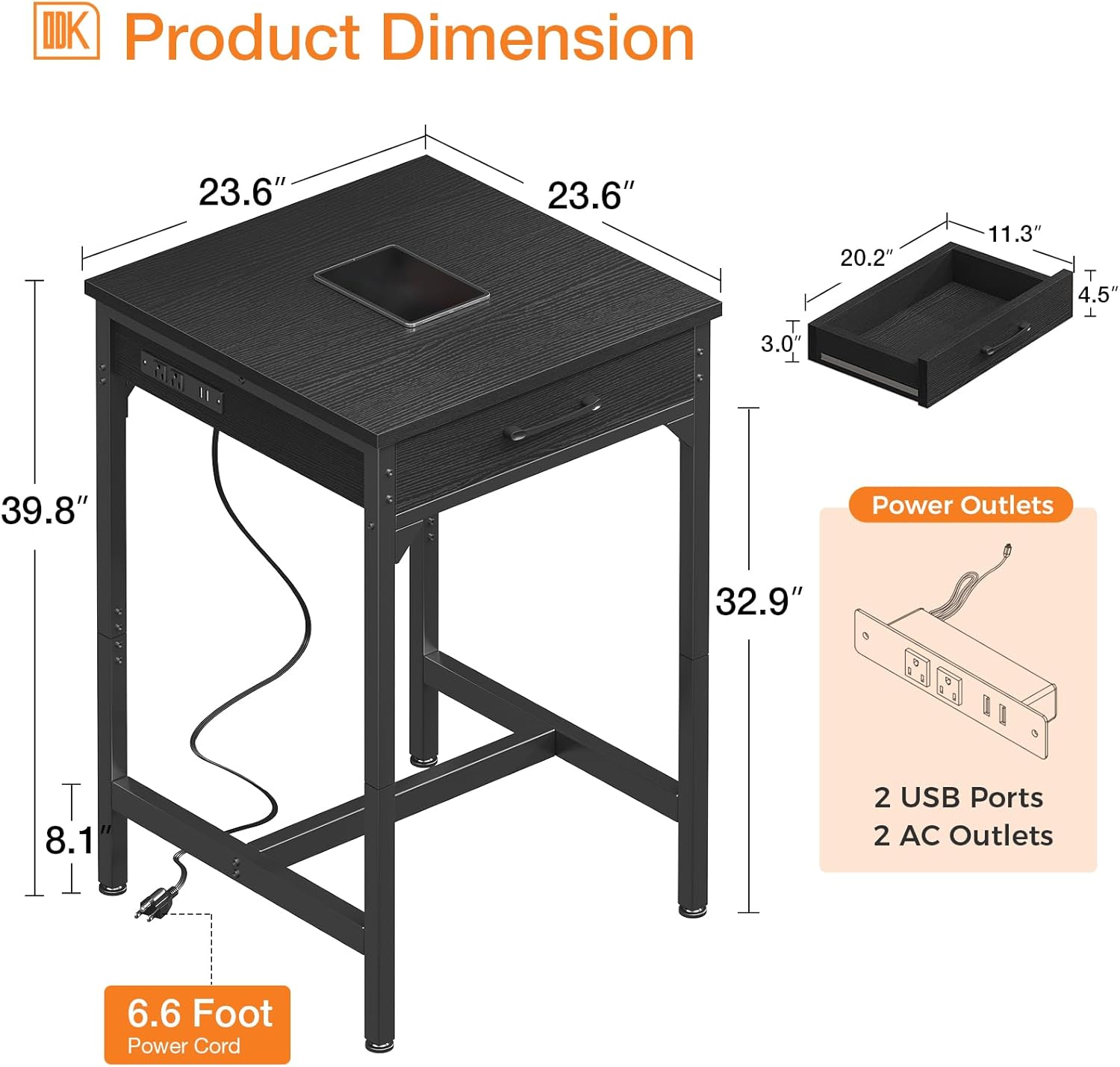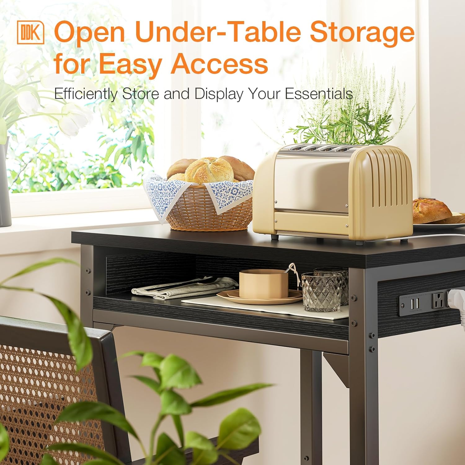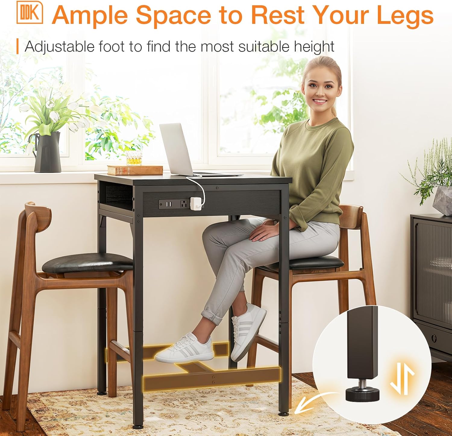【Power Outlets & Charging Ports】 ODK bar table comes equipped with 2 power outlets and 2 USB charging ports, providing a convenient charging solution while working, dining, or relaxing. Stay powered up without leaving your seat!