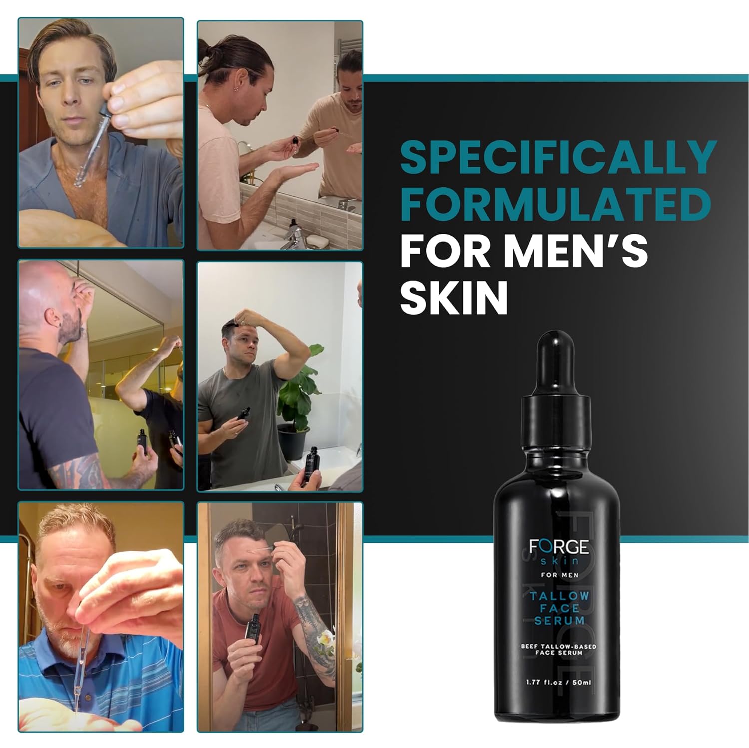 NON-GREASY AND FAST-ABSORBING: Forge Beef Tallow Skin Care for Men is lightweight and non-comedogenic. The Beef Tallow Face Moisturizer Men’s Face Moisturizer Serum absorbs quickly without leaving any greasy residue. Grass-Fed Beef Tallow Face Moisturizer for Men seamlessly fits into your nightly skincare routine, providing maximum benefits while you sleep. Enjoy the feeling of nourished and balanced Men’s Face Care Korean Glow Serum skin every morning.