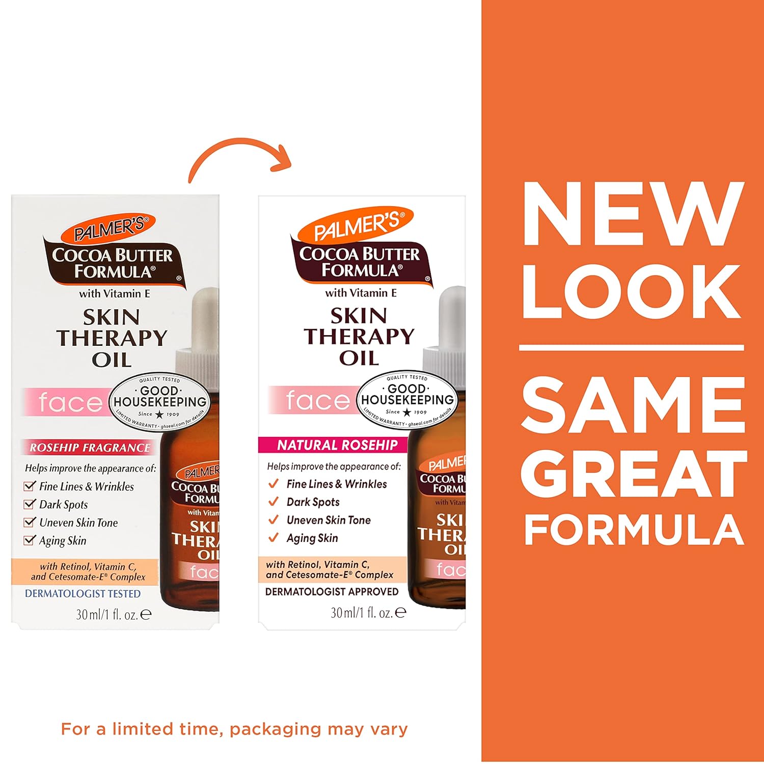 Palmer’s Cocoa Butter Formula Skin Therapy Face Oil transforms your skin with a powerful blend of 10 pure precious oils, Retinol, Vitamin C and our exclusive Cetesomate-E Complex. Skin restorative oils along with natural Cocoa Butter, Retinol and Vitamin C deliver multi-purpose, anti-aging skin benefits. Ten Pure Oils help moisturize and smooth fine lines and wrinkles while Retinol and Vitamin C help improve and brighten tone and texture. Different from a moisturizer face cream, this lightweight, non-greasy face oil for women absorbs quickly, while the Cetesomate Complex helps deliver all of the essential vitamins and nutrients directly into the epidermal layer of the skin. This rosehip oil for face will leave your skin younger-looking with a more glowing and firm appearance that you crave.