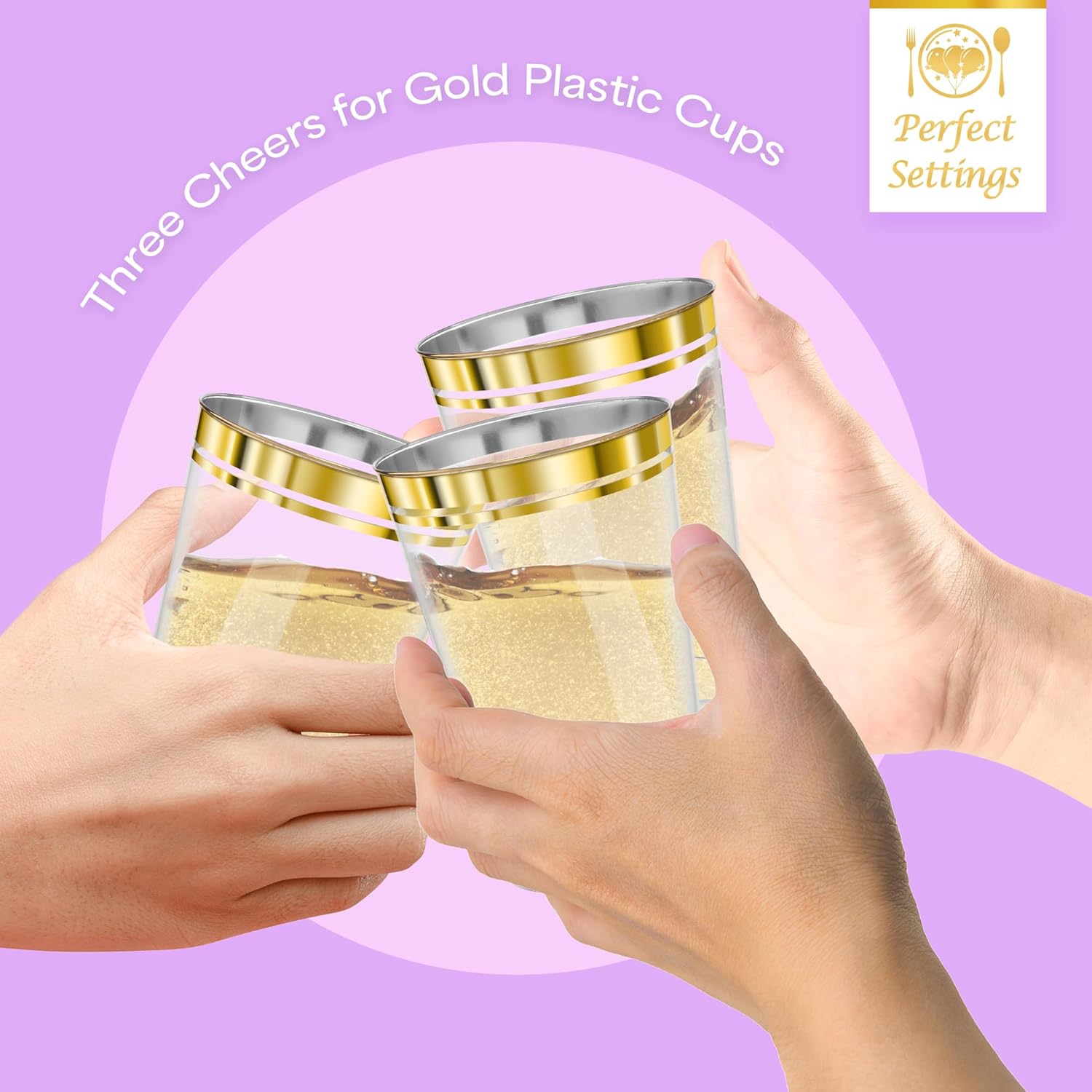Be the first to review “Perfect Settings Premium Double Gold Rimmed Disposable Plastic Cups, Durable Clear Plastic Drinking Glasses for Cold Beverages & Cocktails, BPA-FREE, Disposable Wedding Cups, 14 oz. (Pack of 100)”