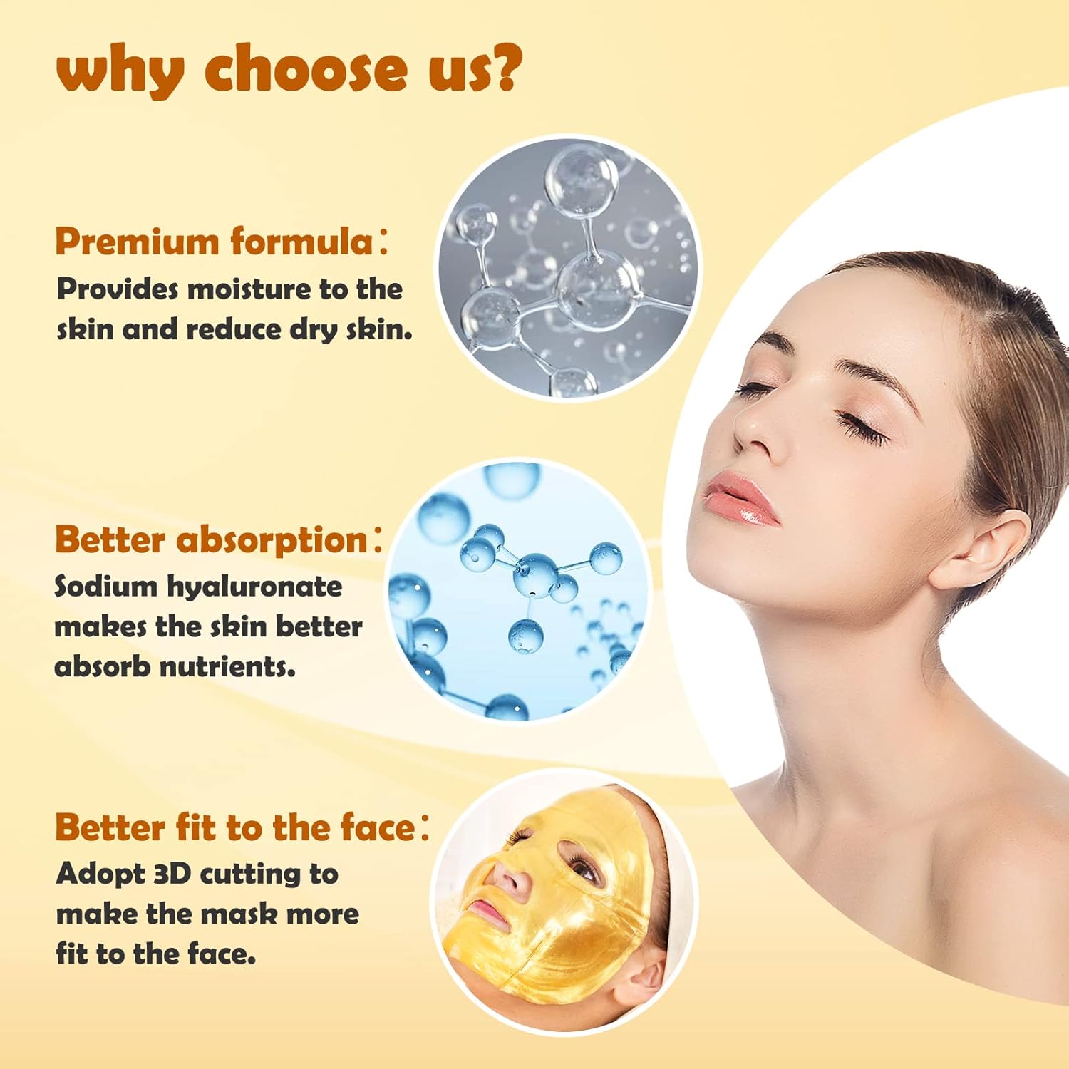 Ideal for SkinCare- face mask sheets is infused with hyaluronic acid, delivering deep, lasting hydration that leaves your skin feeling soft, plump, and refreshed. Ideal for face masks skincare