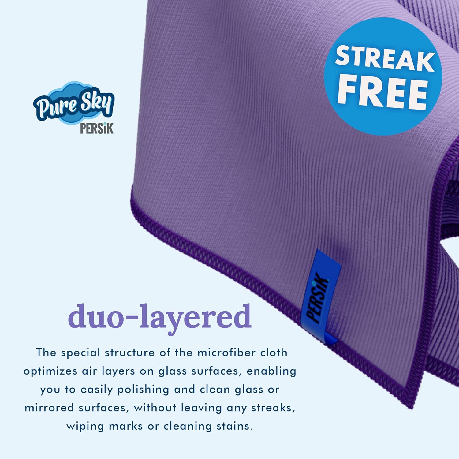 TREAK FREE – The special duo-layered structure of the Pure-Sky window cleaning cloth microfiber towel optimizes air layers on glass surfaces, enabling you to easily polishing and clean glass or mirrored surfaces, without leaving any streaks, wiping marks or cleaning stains, which is one of the major problems with existing window glass cleaning cloth