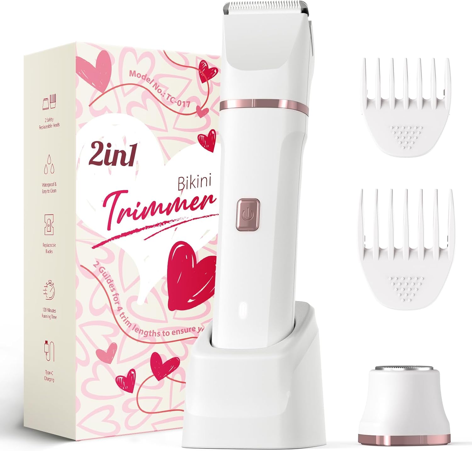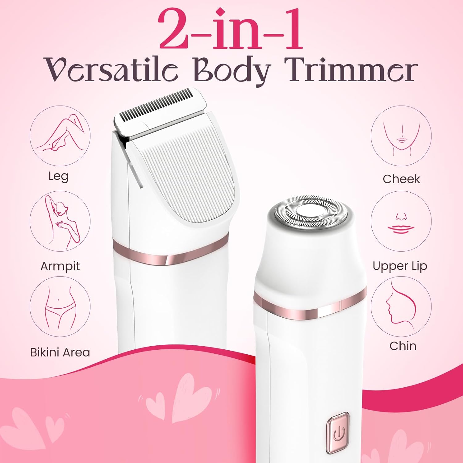 💞【2-in-1 BIKINI TRIMMER】Say hello to versatility with the Risina bikini trimmer for women. Featuring two efficient shaving heads, it’s perfect for tackling hair on various parts of your body. The body shaver head is ideal for arms, legs, and bikini areas, while the facial shaver head takes care of cheeks, chin, and upper lip.