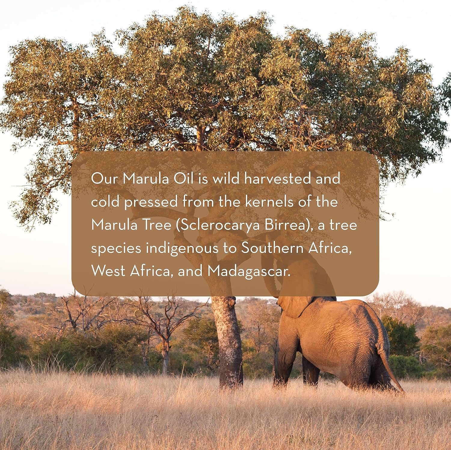 Wild Harvested and Cold Pressed from the kernels of the Marula Tree, a tree species native to Africa