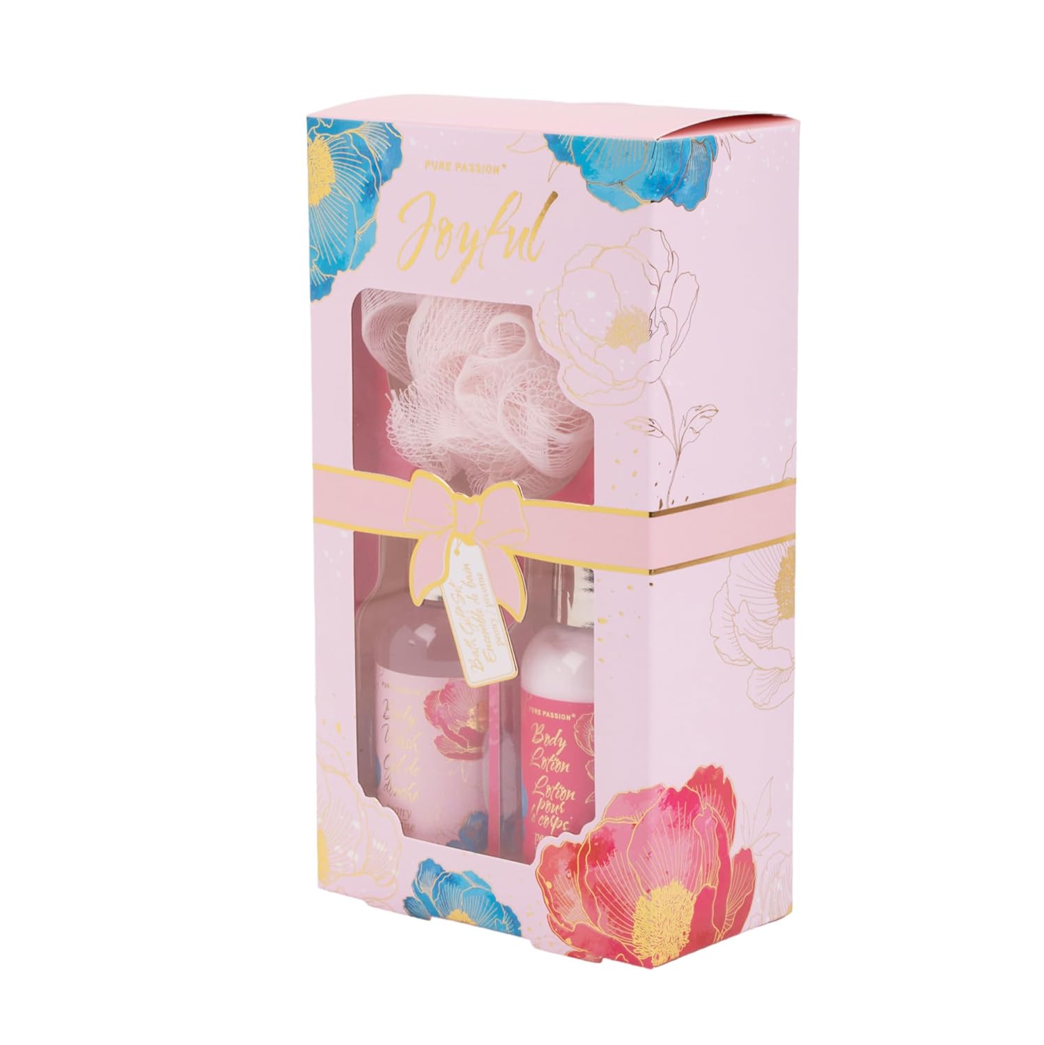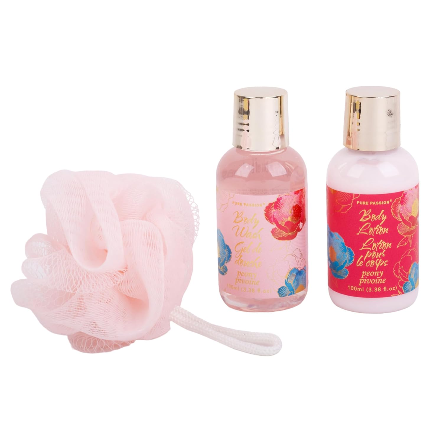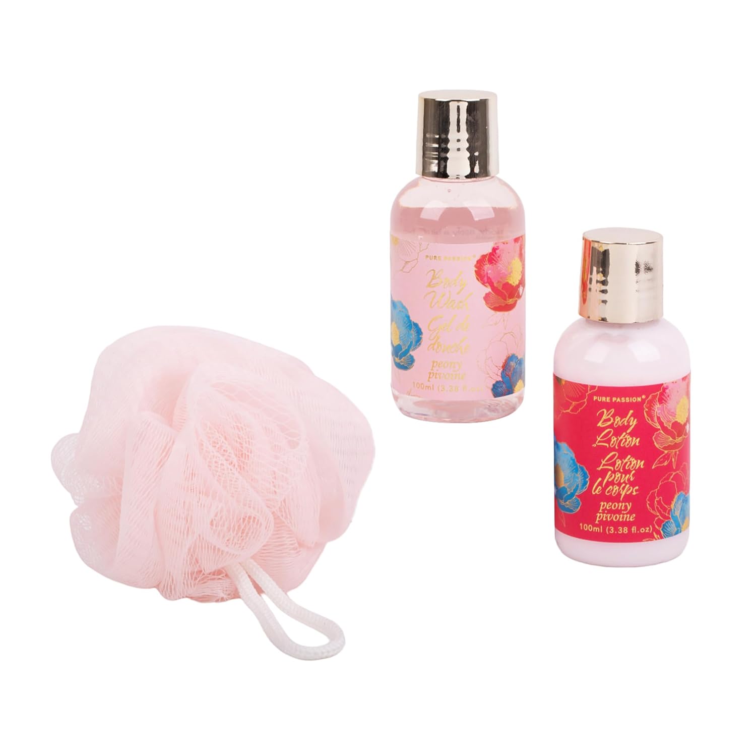 PURE PASSION Shower Set includes Shower Gel, Body Lotion and Bath Sponge