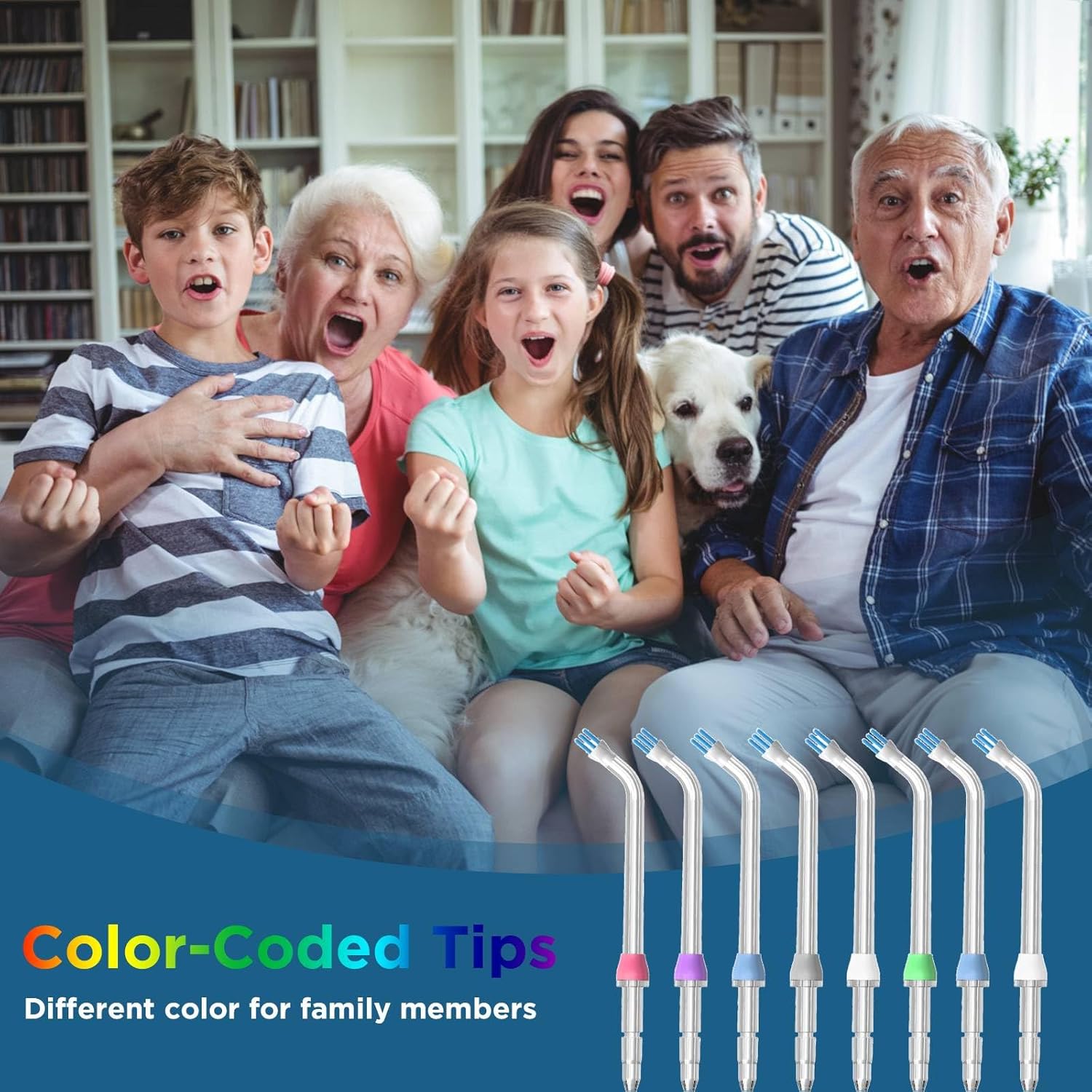 Color-Coded Tips for Family-Friendly Hygiene: Each tip features a unique color (blue, green, pink, etc.) to easily distinguish between family members—no more mix-ups! Promotes personal hygiene and simplifies shared use.