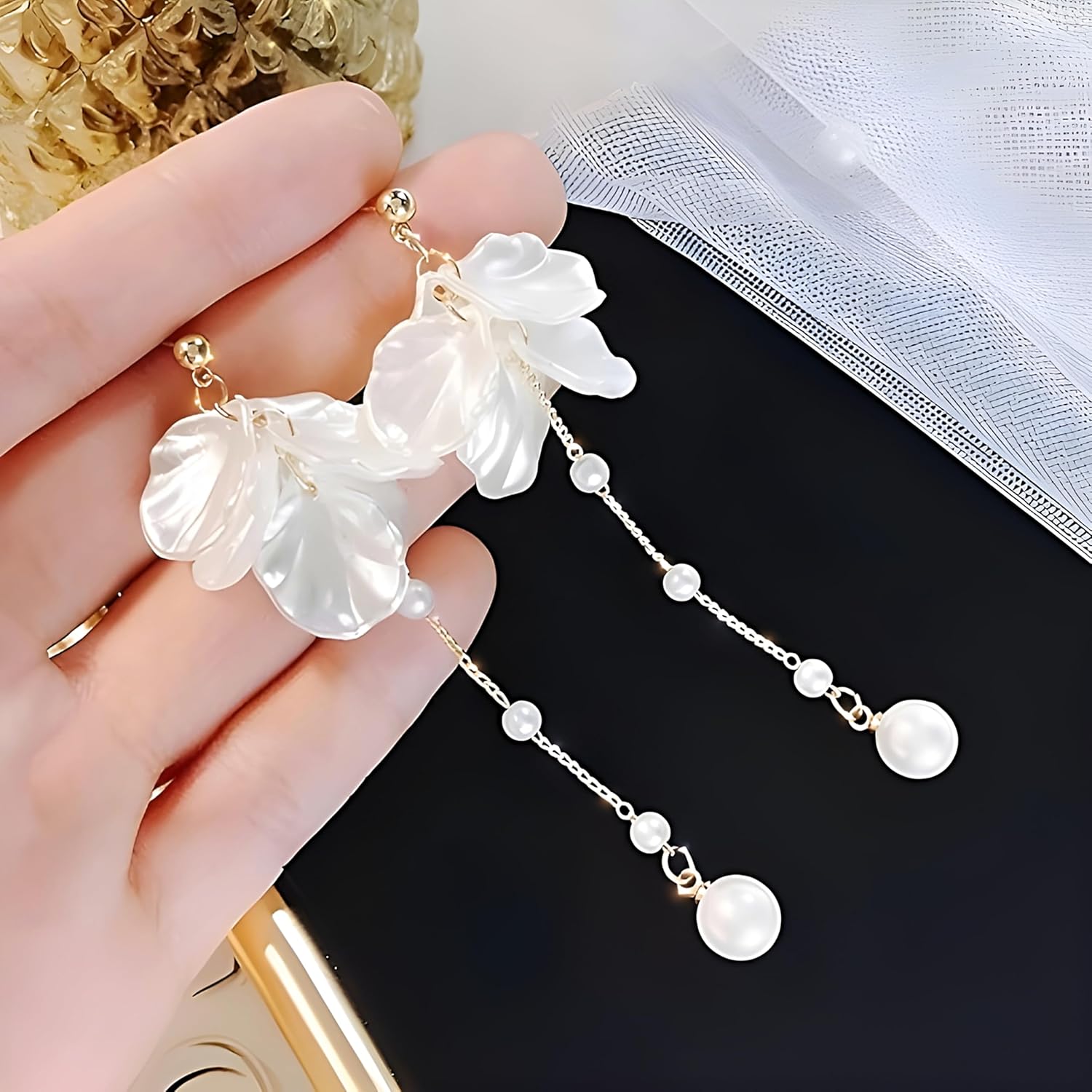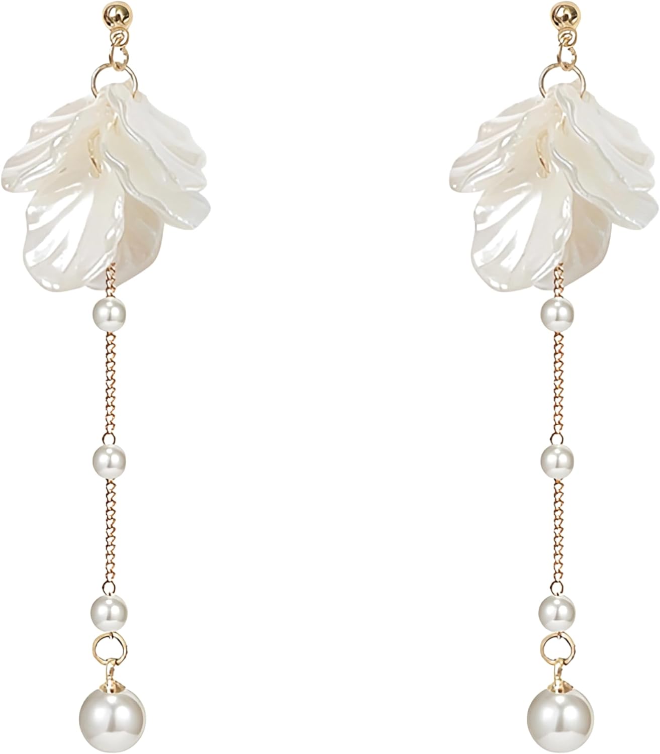 Be the first to review “Seashell Pearl Flower Dangle Earrings for Women – Elegant Double Layer White Freshwater Pearl Bridal Jewelry, Lightweight Sparkly Golden Stud Drop Earrings for Wedding/Beach/Summer Party”