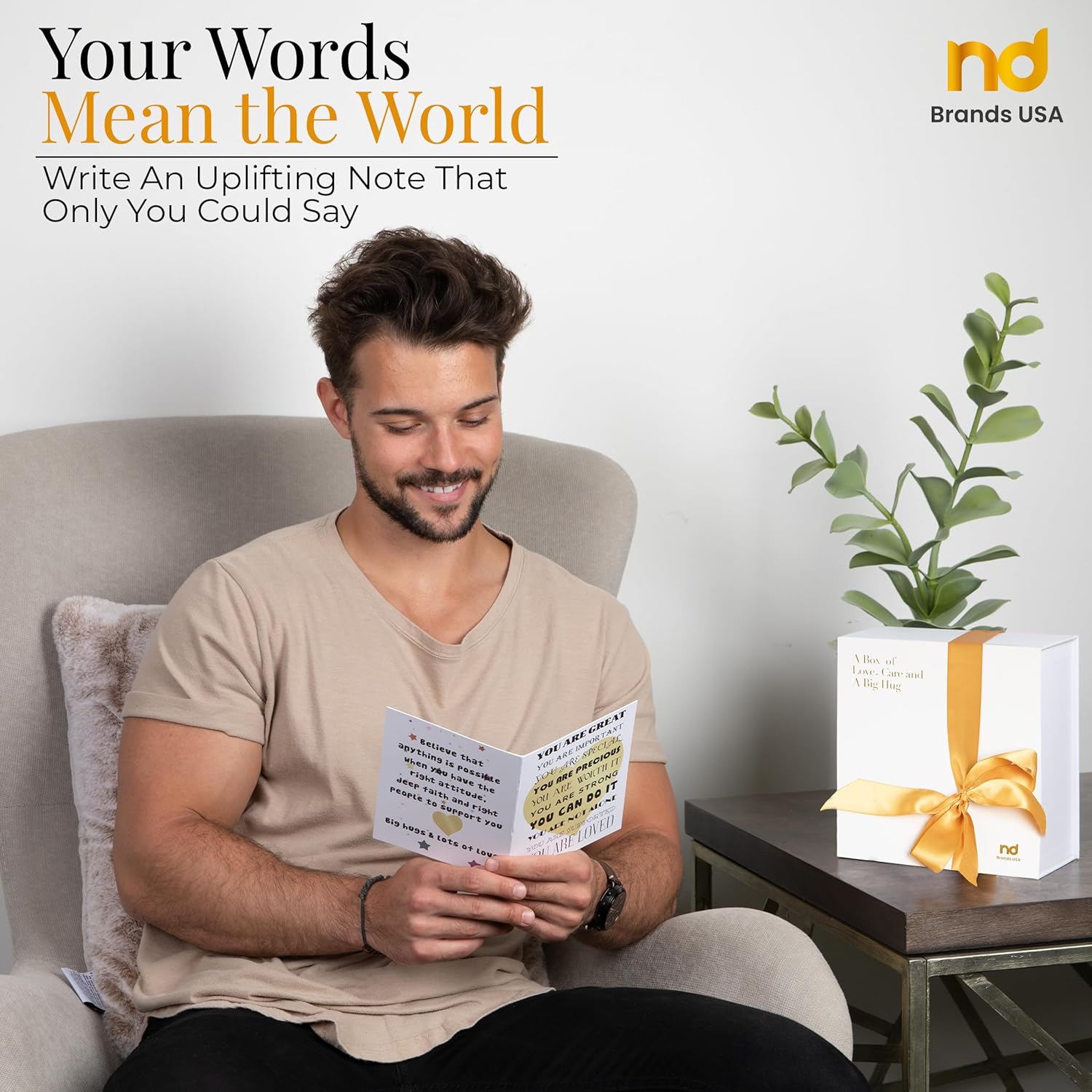 Beautifully presented and ready to gift: Our meticulously curated gift basket is elegantly wrapped in a high-quality magnetic re-usable box with a golden ribbon and bow. Inside, you’ll find carefully crafted items designed to provide a complete destress and tranquility experience, promoting relaxation, revitalization, and a sense of well-being. Each component is designed to provide comfort and uplifting messages, creating the perfect gift to express your care for your loved one.