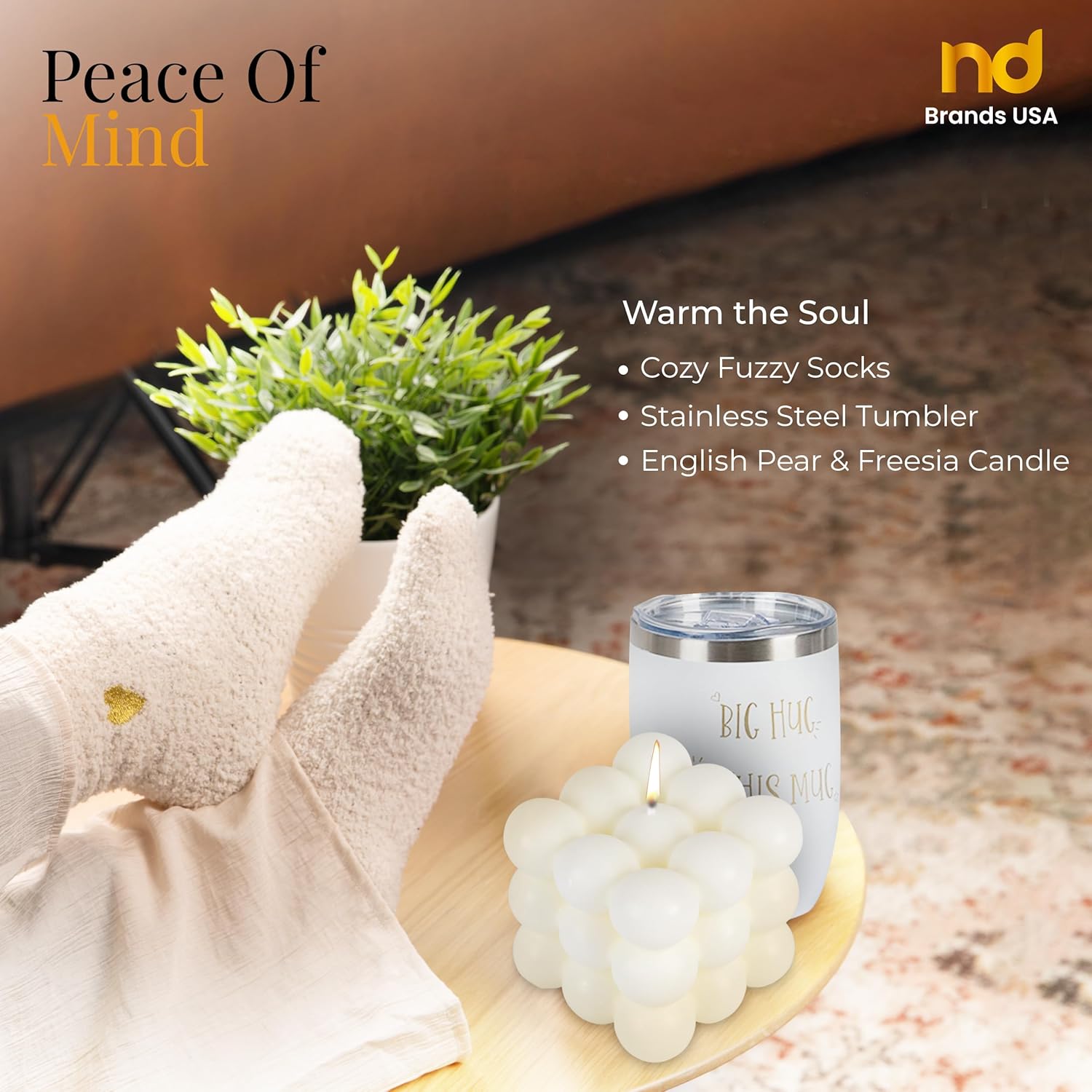 Complete care package present – This self care gift basket is the perfect self care gifts for women and men. It includes everything he/she may need to feel better and cared for. It’s sophisticated clean sleek Spa gift box filled with uplifting presents, bath essentials, bath salt, stainless steel tumbler, aroma candle, fuzzy socks, inspirational card, ensuring that your recovering loved one will feel better soon.