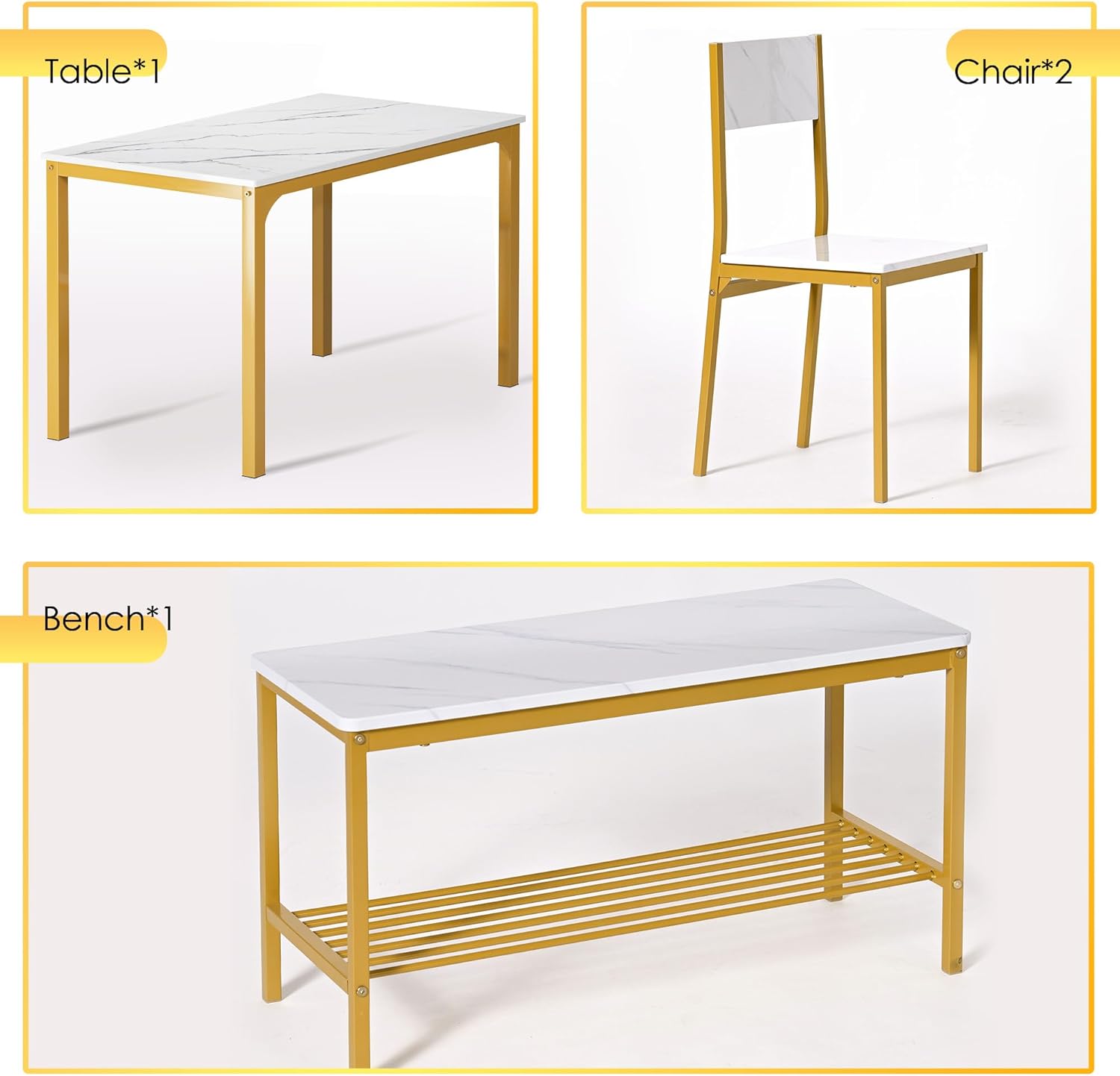 Be the first to review “soges 4 Person Dining Table Set,43.3 inch Kitchen Table Set for 4,2 Chairs with Backrest,2-Person Bench with Storage Rack,Nesting Furniture Set for Dining Room and Restaurant, White Gold”