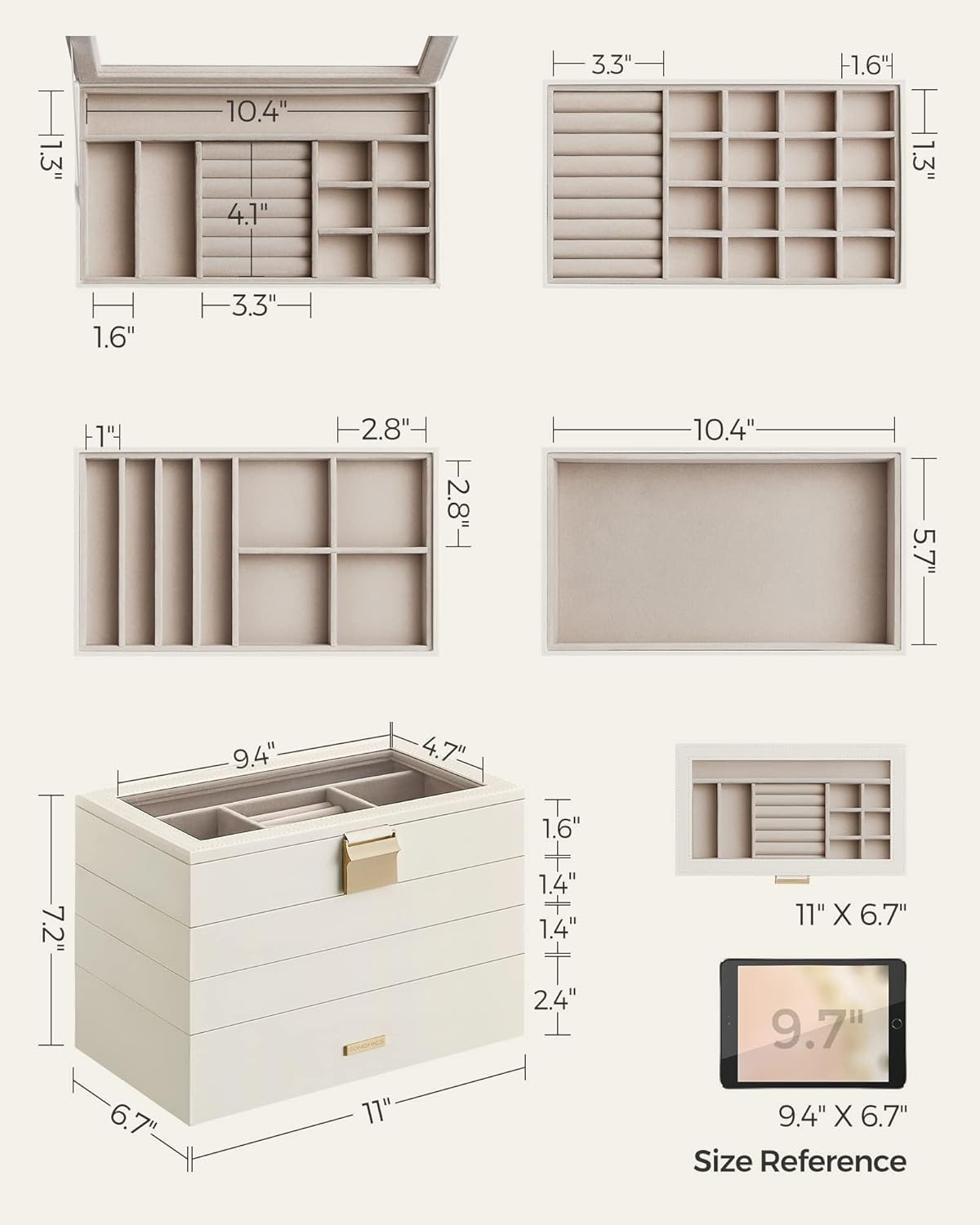 Be the first to review “SONGMICS Stackable Jewelry Trays, 4-Tier Jewelry Box, Drawer Jewelry Organizer, with Glass Lid, Removable Dividers, for Vanity Table, 6.7 x 11 x 7.2 Inches, Gift Idea, Cloud White UJBC164W01”