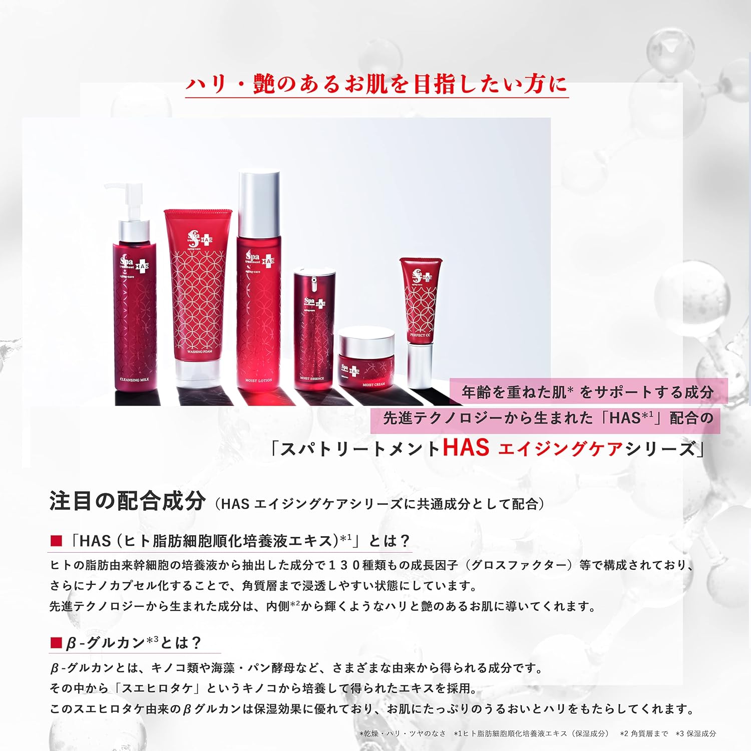 With the most HAS of any of the products in the line, the Spa Treatment HAS Moist Essense is for those who are worried about dull skin, those who have tried other products to no effect, and those who want to prevent signs of aging. No matter what trouble you might have with your skin, this essence can help.