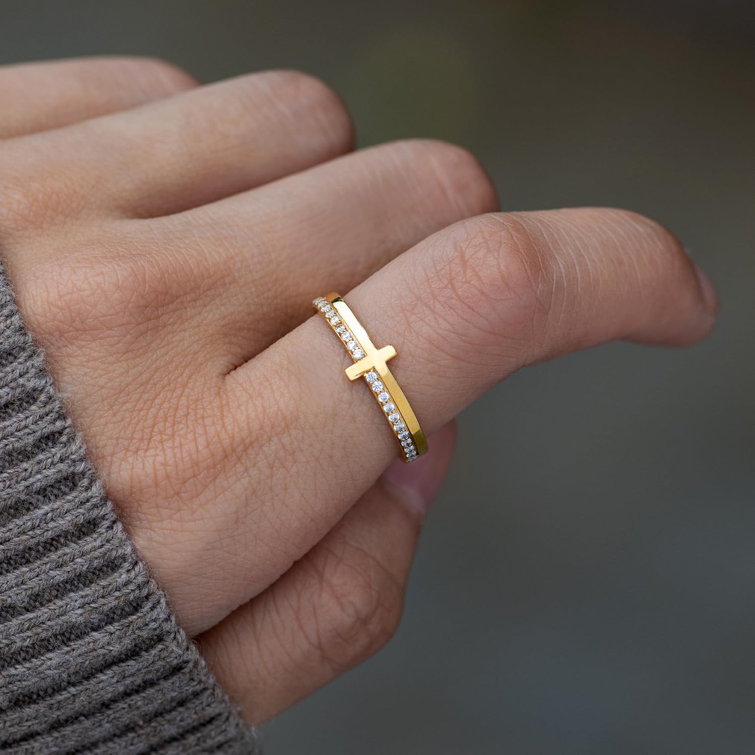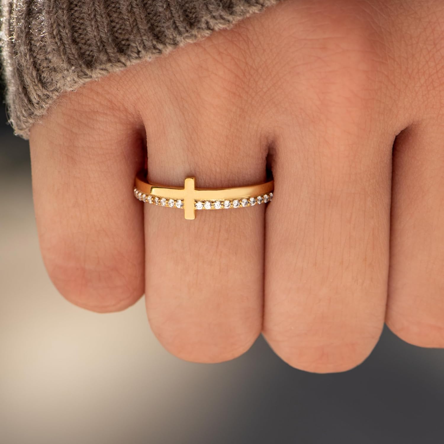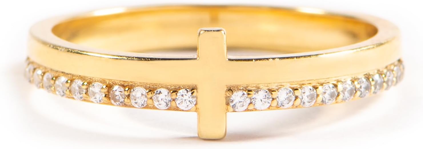 The cross ring is made from top-quality material: either solid sterling silver or alloy plated with silver plus AAA Grade cubic zirconia (optically flawless lab-grown gemstones).