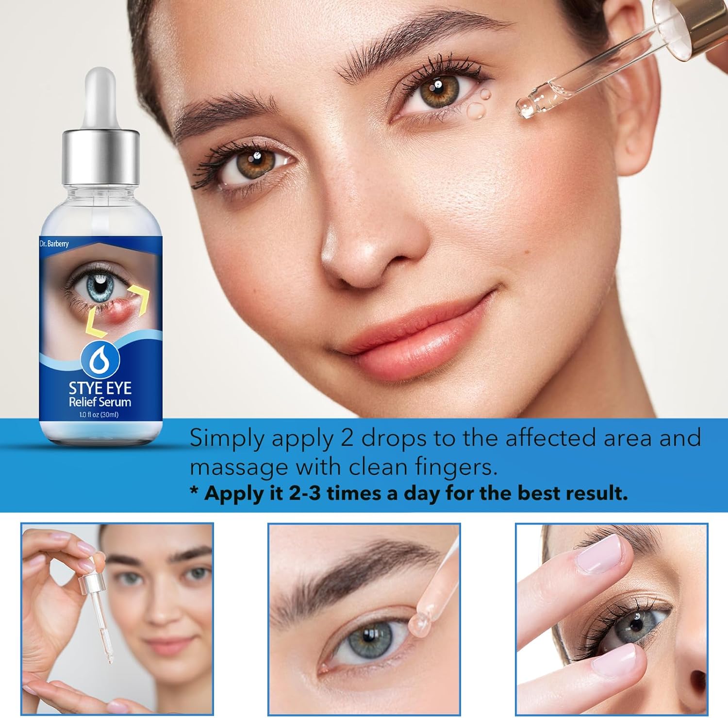 【EASY TO APPLY】 Our stye eye treatment serum comes in a convenient dropper bottle, making it easy to apply and ensuring that the right amount is dispensed every time. Apply 2 drops to the affected area and massage it gently with clean fingers.