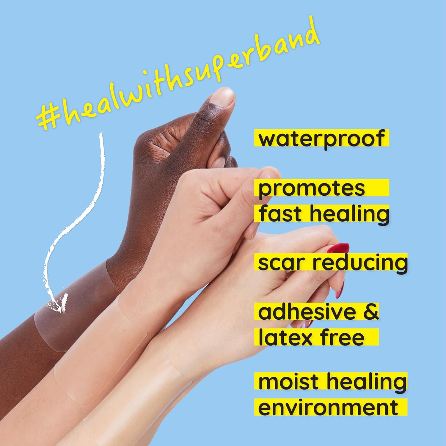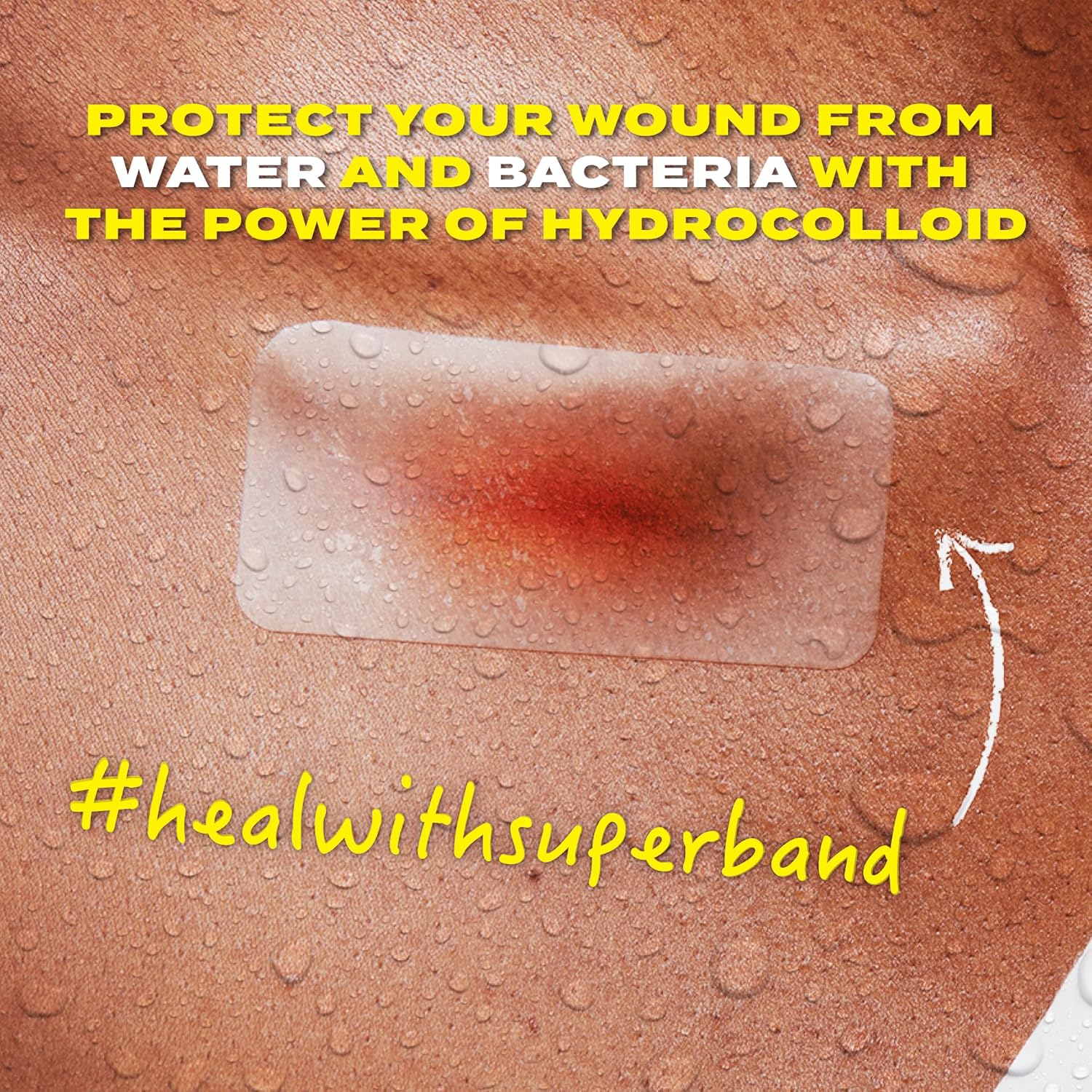 SUPERBAND Premium Hydrocolloid Bandages HSA FSA Eligble Waterproof Wound Dressing by MakeItSkin | Thin, Fast Healing, Scar Reducing for Scratches, Cuts, Burns, Blisters, Fissures, Road Rashes