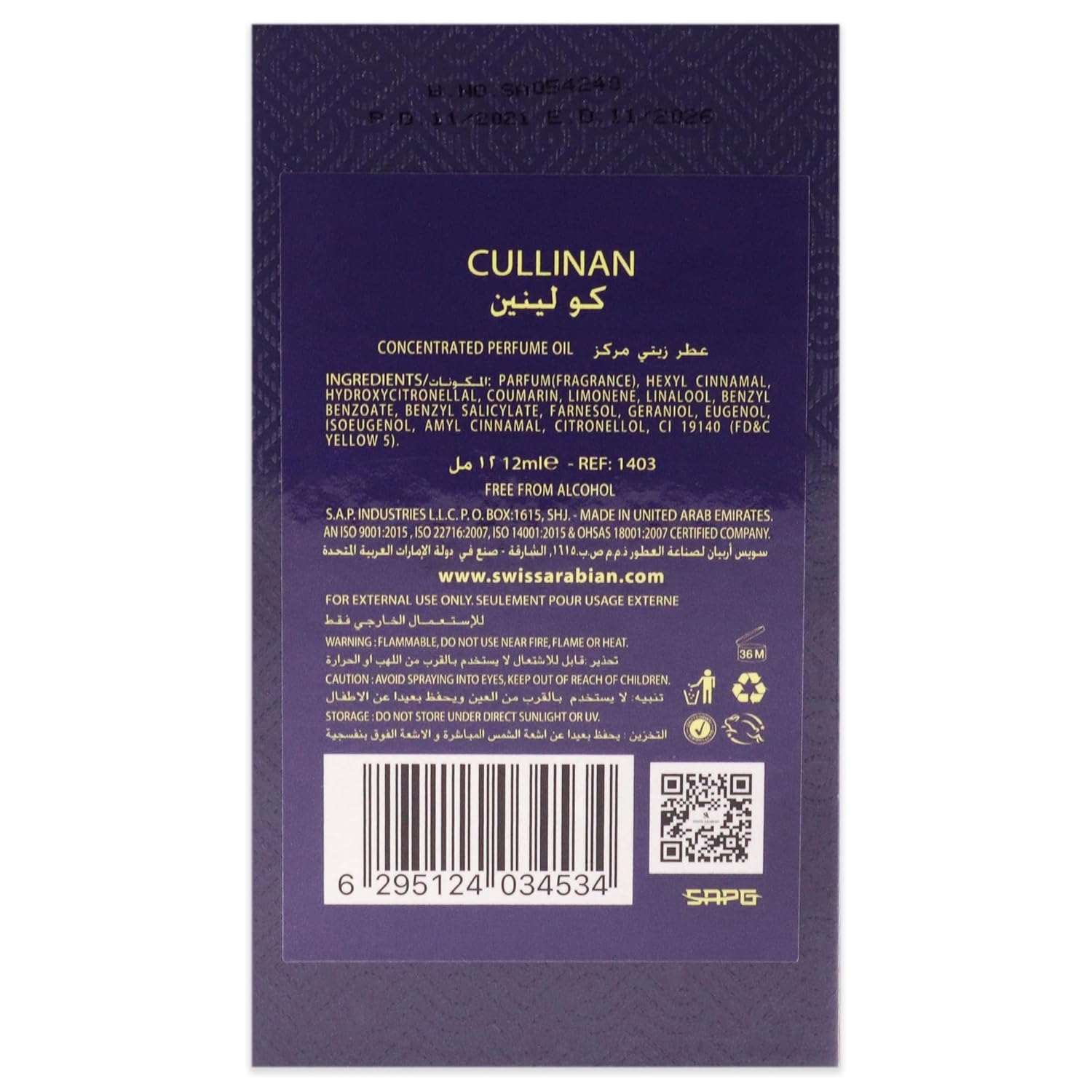 Swiss Arabian Cullinan For Unisex – Luxury Products From Dubai – Long Lasting Personal Perfume Oil – A Seductive, Exceptionally Made, Signature Fragrance – The Luxurious Scent Of Arabia – 0.4 Oz