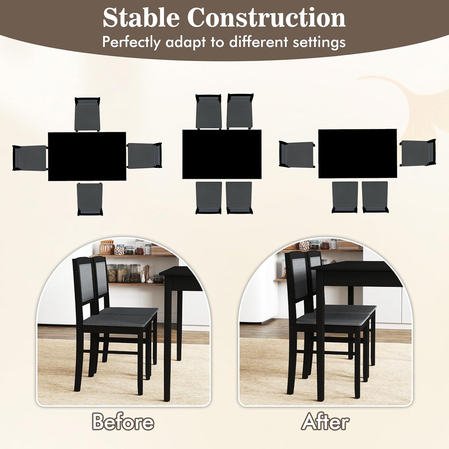 Space-Smart Design: The chairs are designed to tuck neatly under the table, making this set an ideal space-saving solution for small rooms, apartments, or any area where efficiency matters.