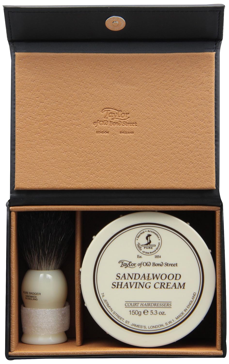 Taylor of Old Bond Street Luxury Shaving Gift Set Box – Sandalwood Shaving Cream & Pure Badger Shaving Brush *NEW*