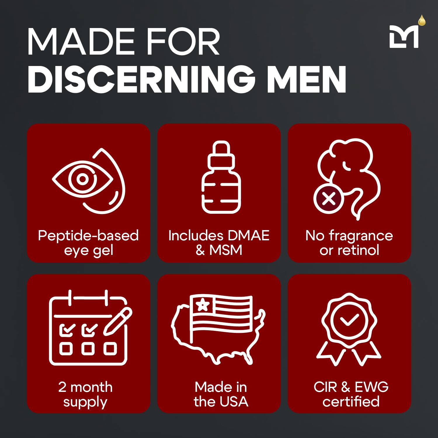 Attacks Aging Signs Around the Eyes: This mens under eye cream can help with dark circles, puffiness, lines, and wrinkles that make you look older than you feel; When you look in the mirror and see fatigue or age staring back, this mens eye bags treatment will go to work quickly