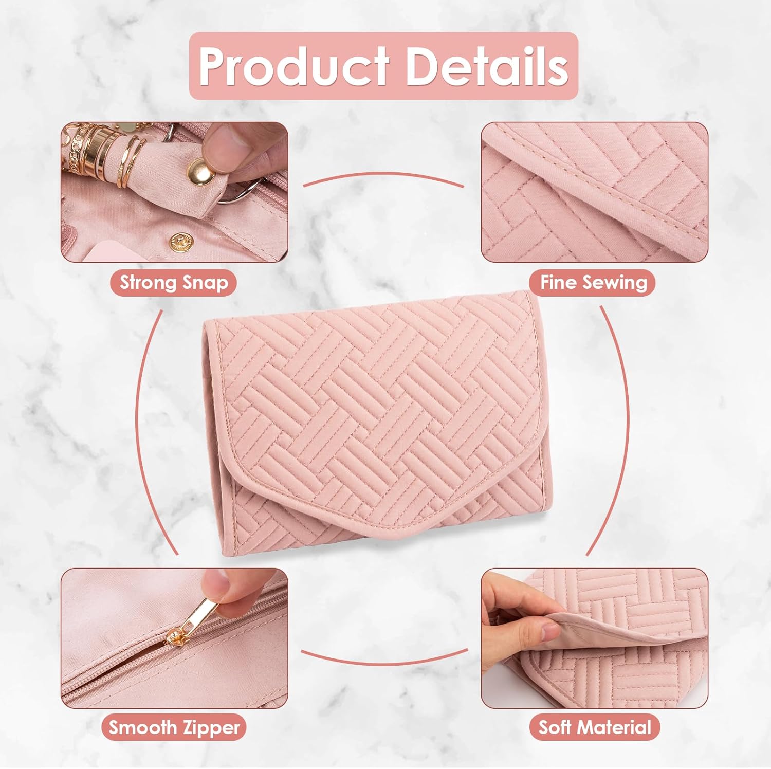 SOFT HANDFEELING: The travel jewelry roll is made of imitate peach skin velutum and cotton wrought design, with tight stitching, soft material and smooth zipper, fully protects your jewelry from scratches and squeezes