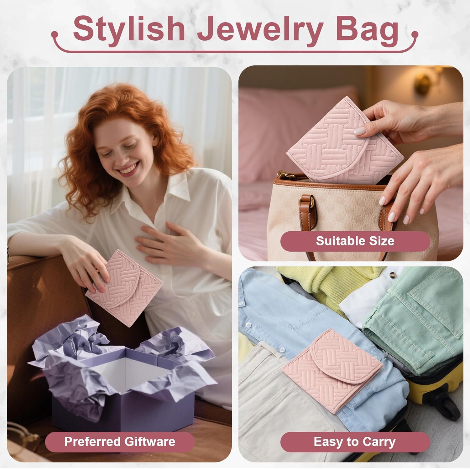 TRAVEL PARTNER: This bags for jewelry is durability, small and beautiful. Not only can it be used at home, as a good partner for traveling and other outdoor activities; but also be used as a giftware for your friends and family