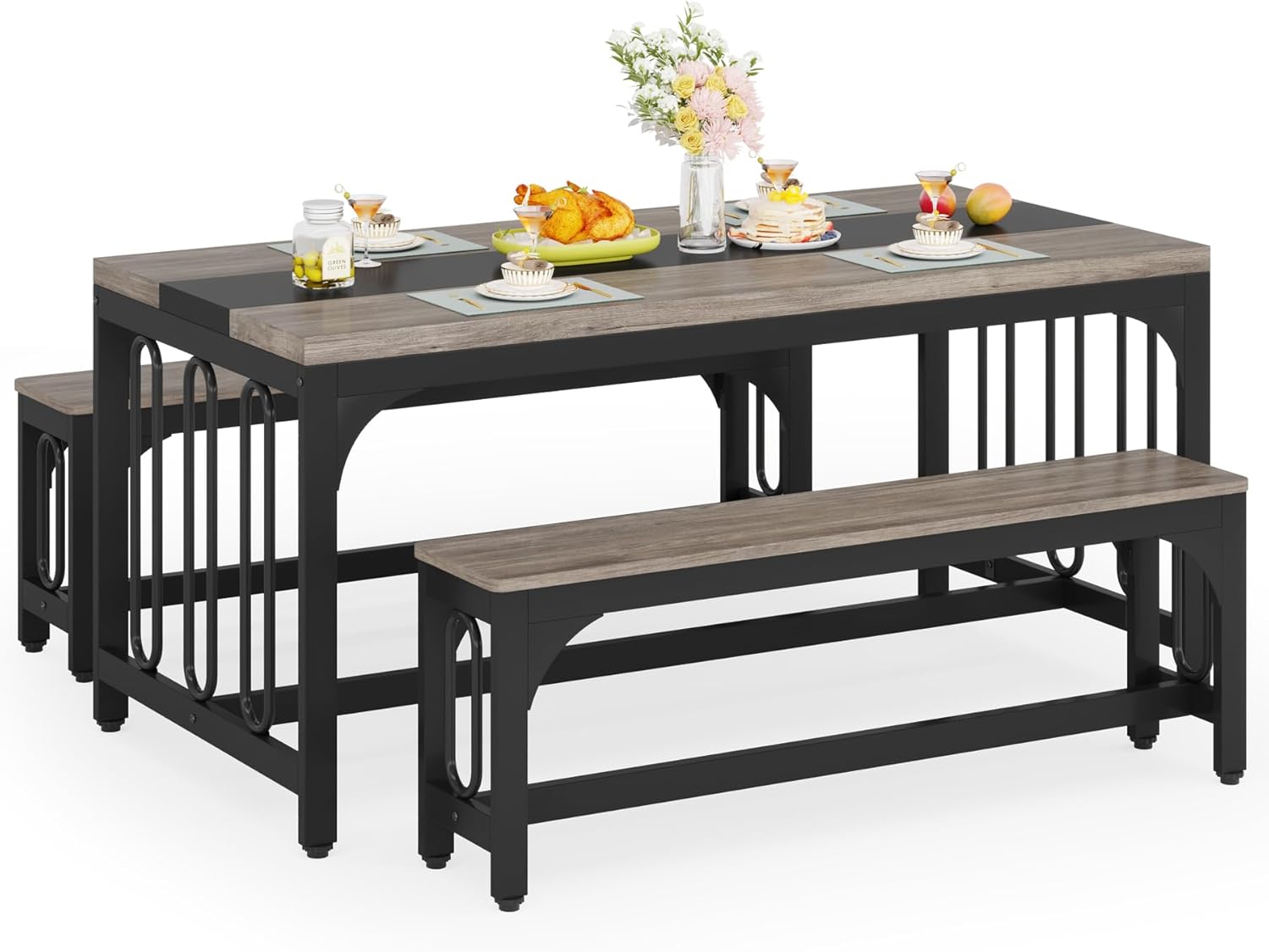 Be the first to review “Tribesigns Dining Table Set for 4, Farmhouse Kitchen Table with 2 Benches, 3-Piece Dining Room Table Set with Metal Frame for Breakfast Nook and Small Spaces, Grey”