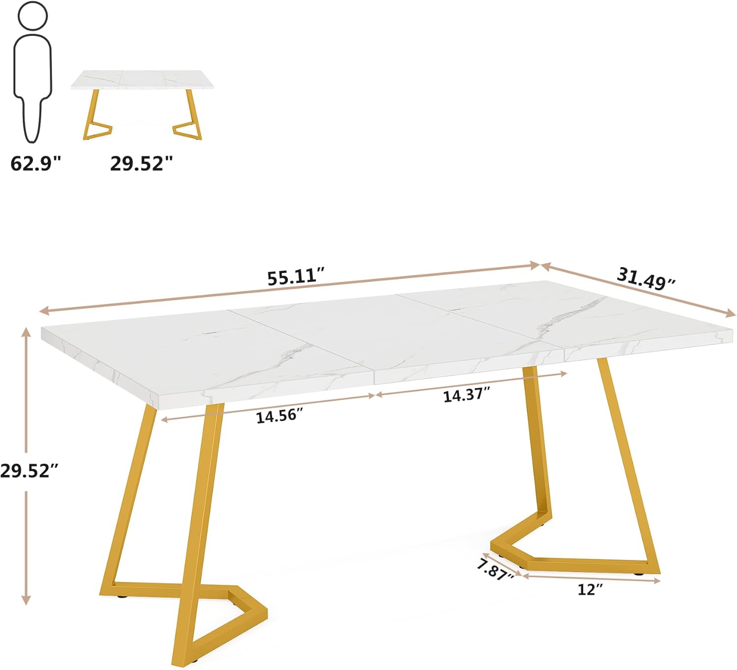 Tribesigns Gold Dining Dinner Table: 55 Inches Modern White Dining Room Table with Golden Legs, Faux Marble Small Kitchen Table for 6, Rectangular Dining Table for Apartment
