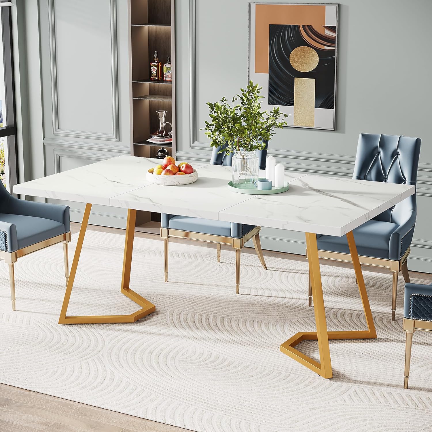 Be the first to review “Tribesigns Gold Dining Dinner Table: 55 Inches Modern White Dining Room Table with Golden Legs, Faux Marble Small Kitchen Table for 6, Rectangular Dining Table for Apartment”