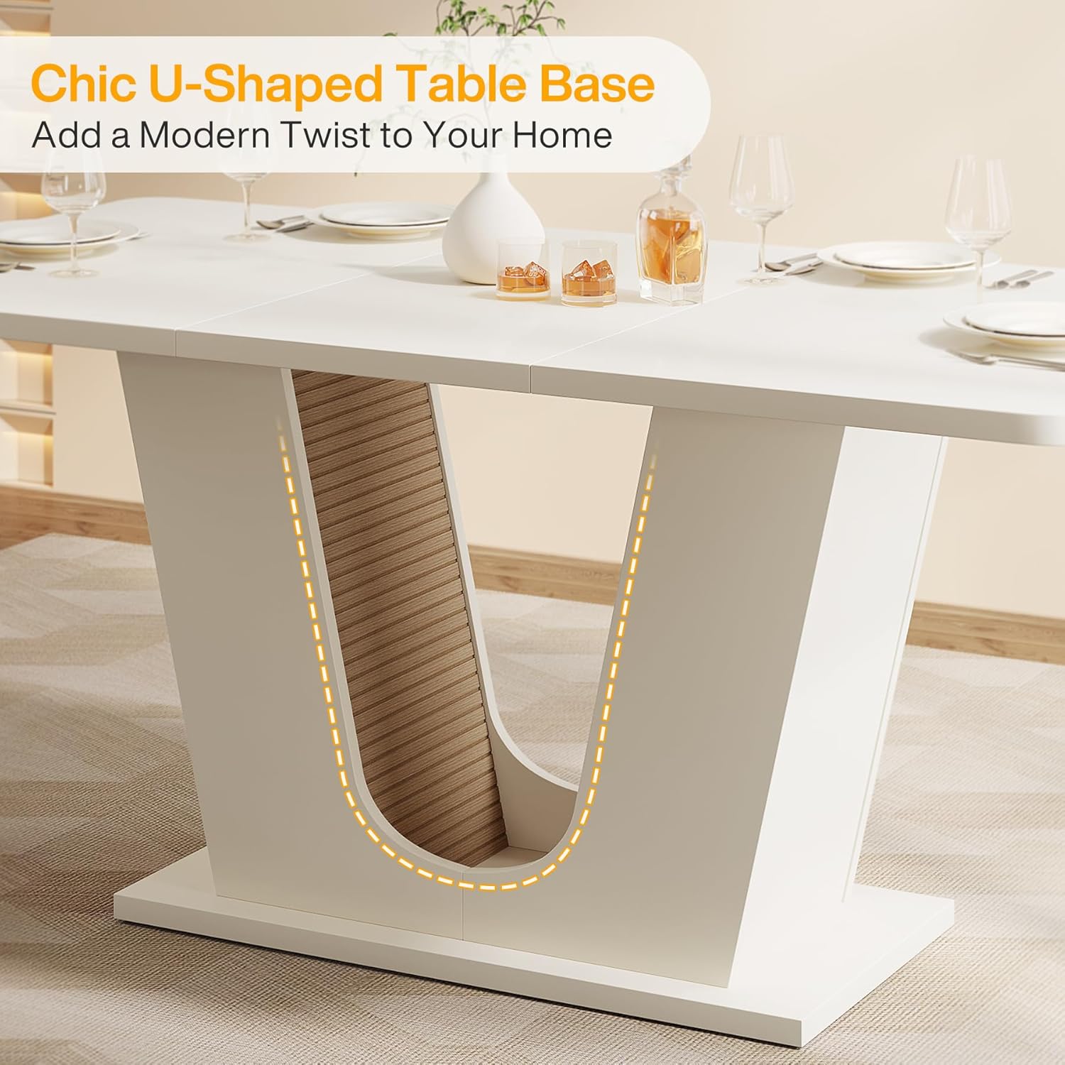 Tribesigns Modern Dining Table for 4-6 People, 55-Inch Rectangular Kitchen Table with U-Shaped Base, Dinner Table for Kitchen Dining Room Apartment, Cream White