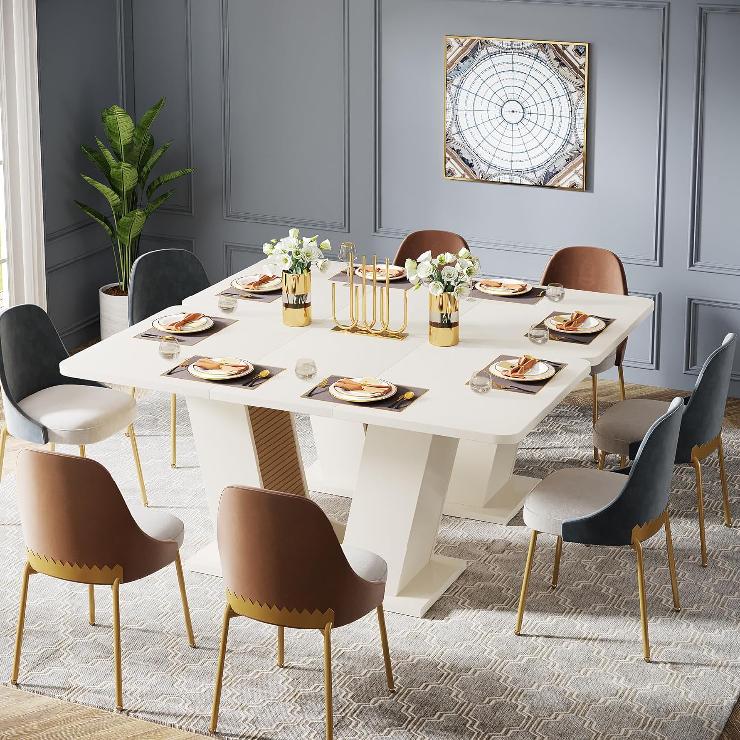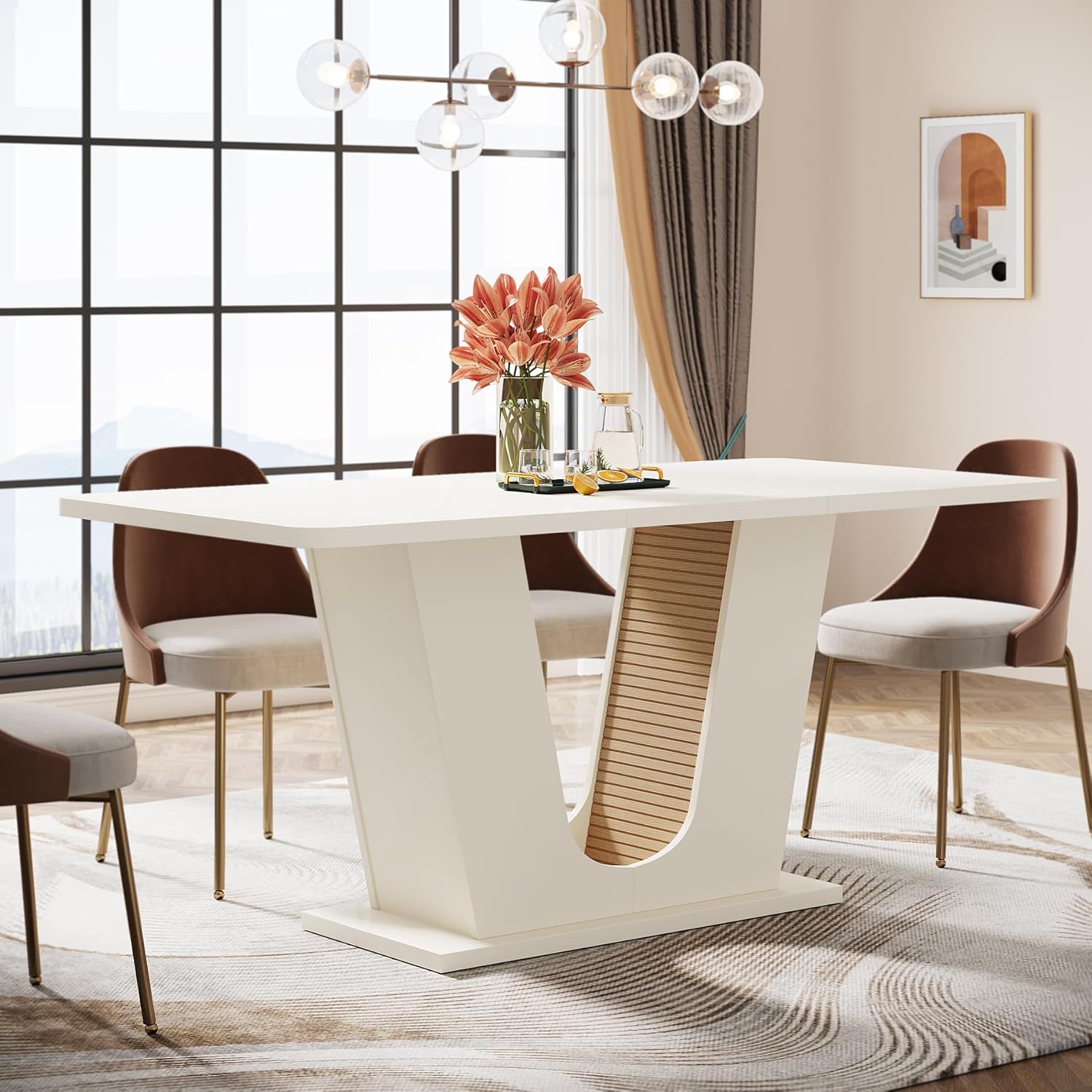 Be the first to review “Tribesigns Modern Dining Table for 4-6 People, 55-Inch Rectangular Kitchen Table with U-Shaped Base, Dinner Table for Kitchen Dining Room Apartment, Cream White”