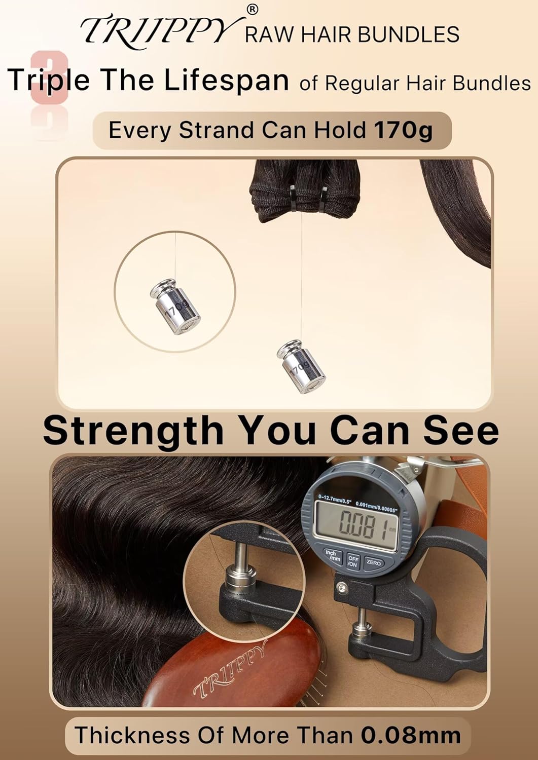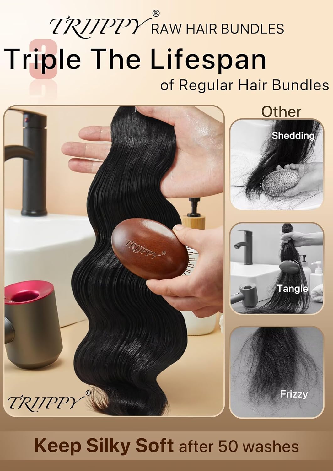 TRIPLE THE LIFESPAN —Up To 3x The Lifespan Of Regular Brazilian Virgin Remy Hair Bundle.Lasts up to 24 months with proper care. Cuticle-aligned raw hair resists tangling, shedding and dryness/frizz; soft, full, healthy ends stay bouncy through multiple installs